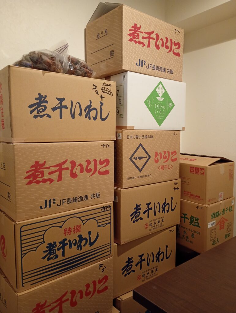 テーブルのとなりにはうず高く積まれた煮干しの段ボールがありました。オーナーはもともとイタリアンのシェフをされており、その後に創作和食料理家として独立されてそうです。ただ、コロナ禍になり創作和食の経営が難しくなり、ラーメンに業態転換したそうです。