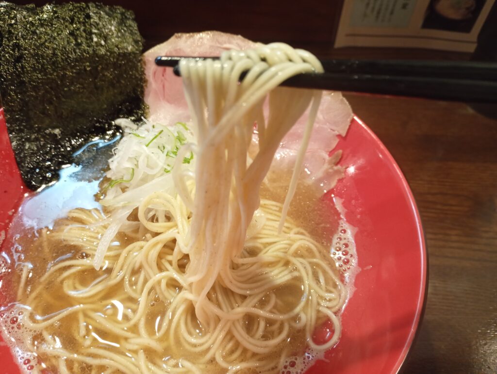 ラーメンの麺は細めのストレート麺になっています。三河屋製麺さんの麺だそうです。