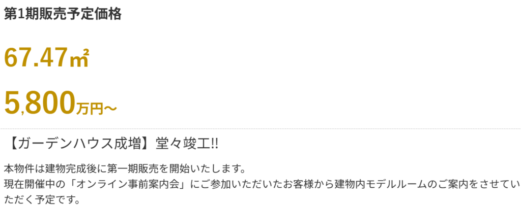 最近は成増の不動産市場の価値が上がっているようですので、分譲価格はいくらなのでしょうか。