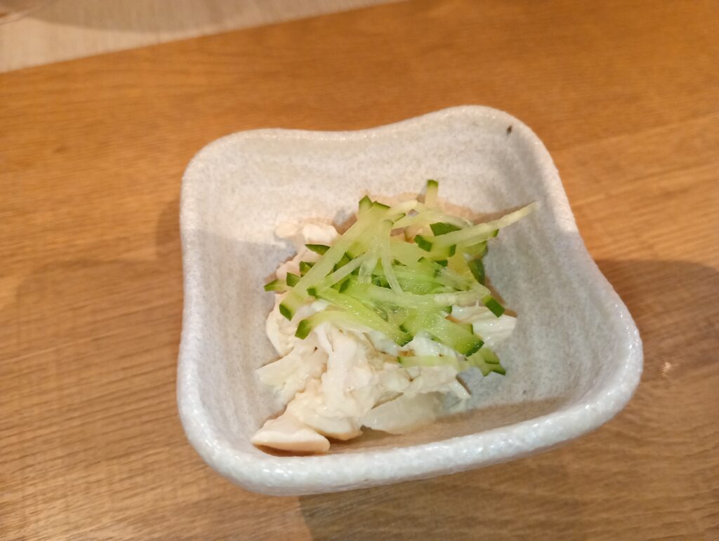何気ない鶏肉とキュウリのお通しですが、味はとっても美味しかったです。ドレッシングなどもご自身で作っているそうです。