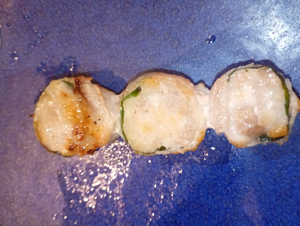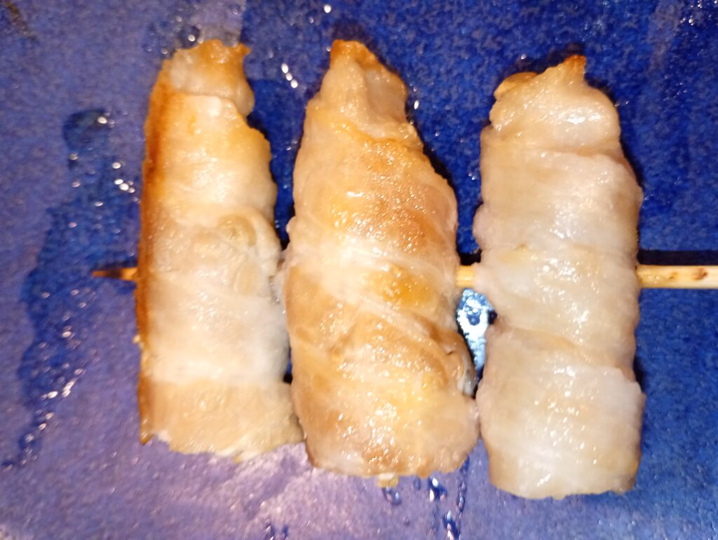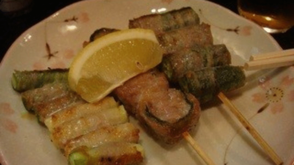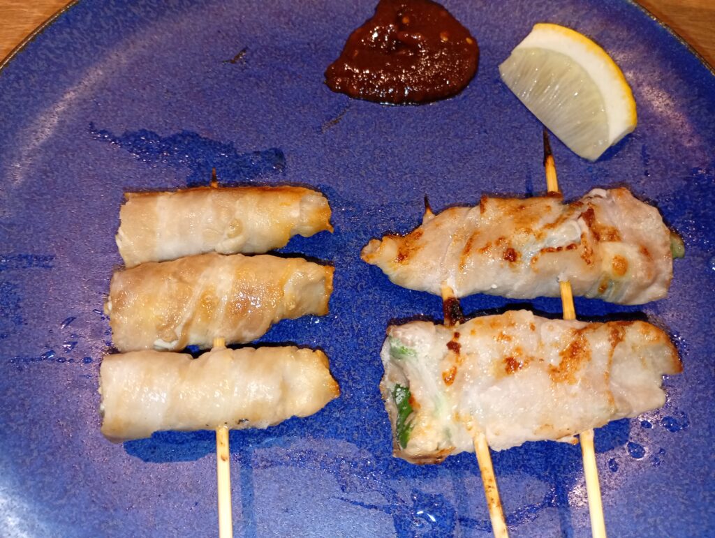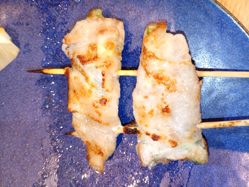 しそ巻、ネギ巻、アスパラ巻にあんります。野菜に豚バラが巻いてあるのですが、一つ一つよしさんが丁寧に仕込みをしているそうです。毎日午前中にお店に出て、5時間以上仕込みをしているとか。