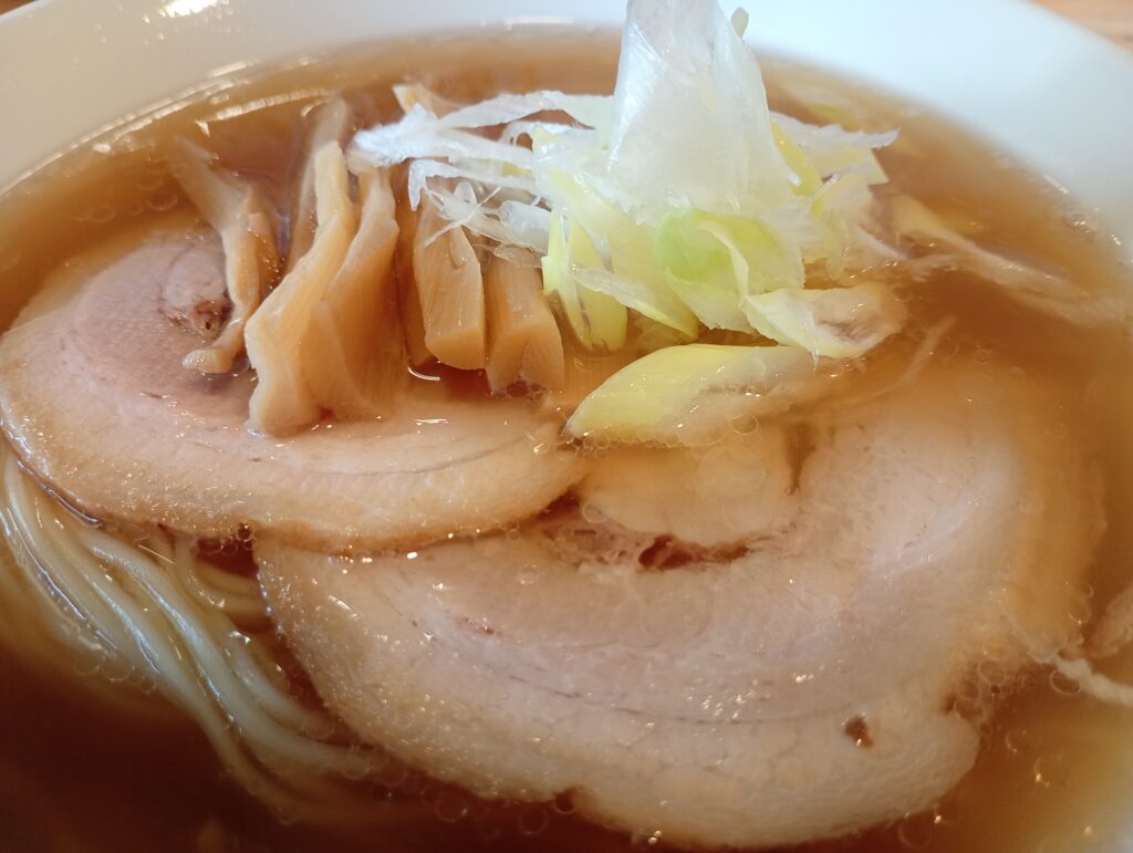 スープは千葉県産のイワシ煮干しと北海道利尻昆布の旨味が詰まった、透き通ったスープが特徴です。風味を最高の状態で出すために、提供前に温めるそうです。朝からでも重たくなく、心に染み渡る優しい味わいです。