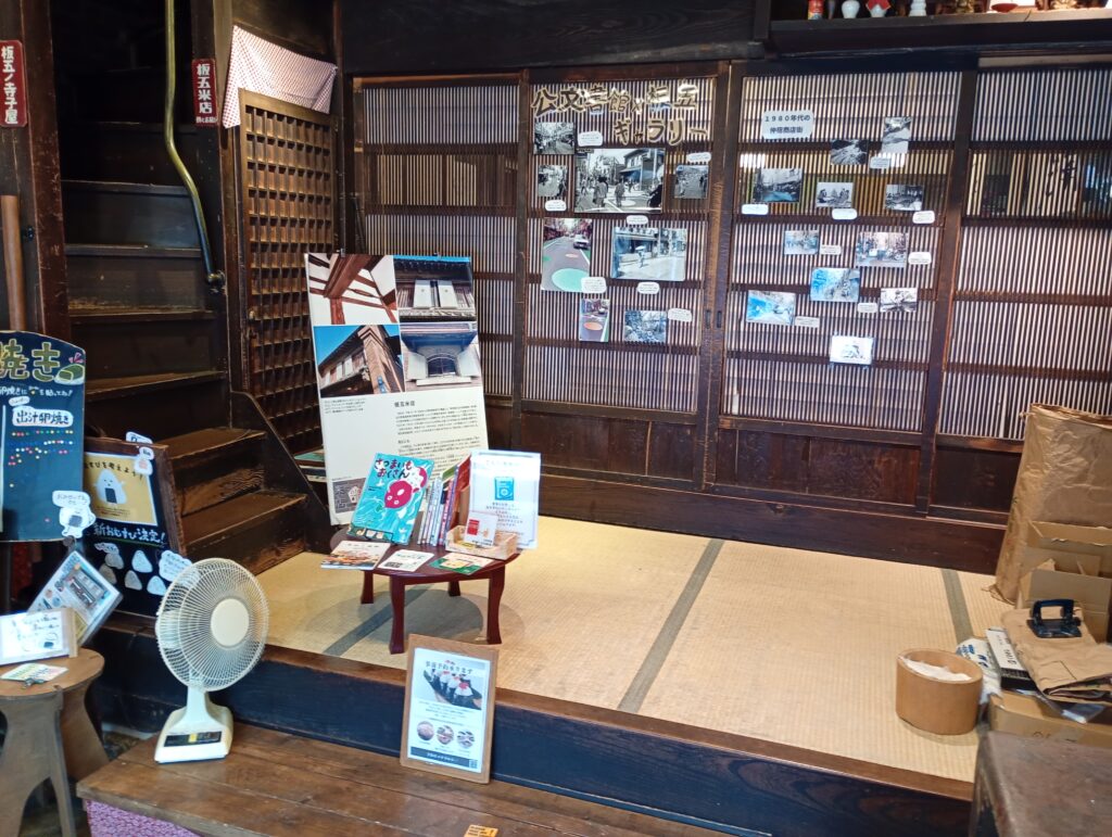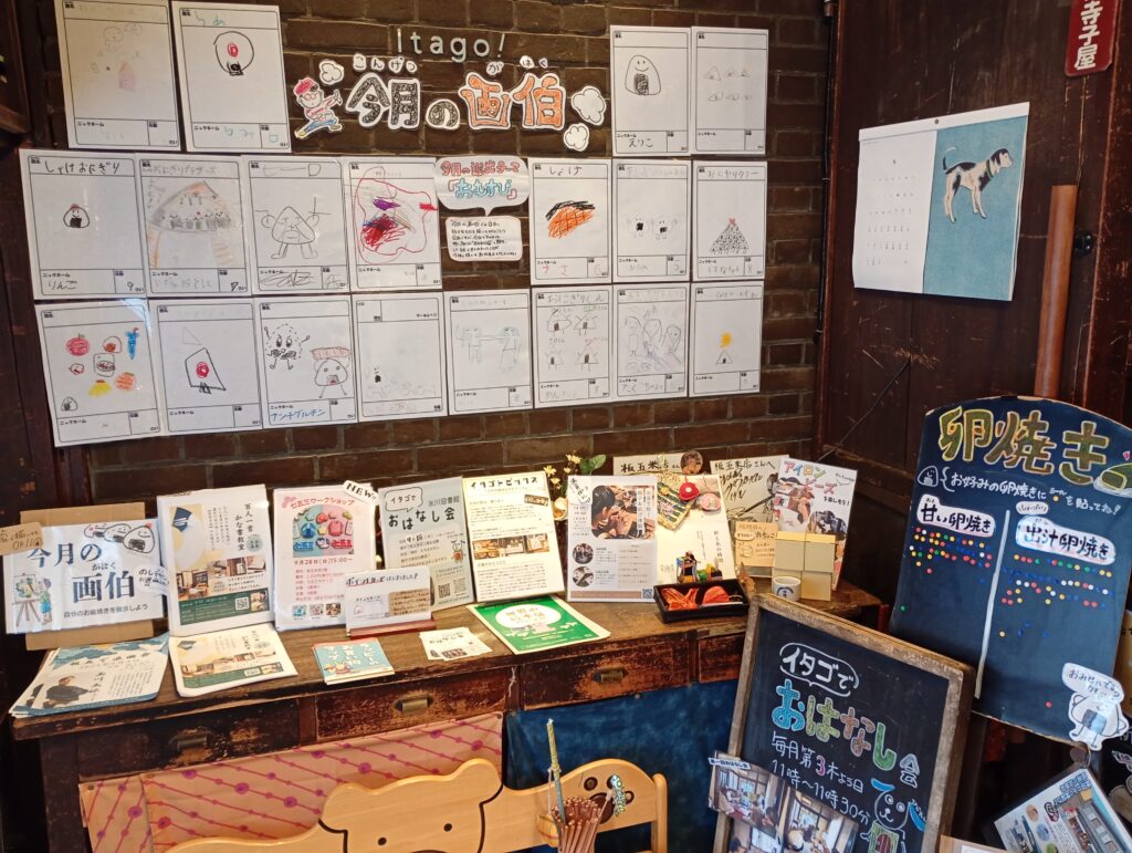 お結びが出来上がるまで店内を見させていただきました。地域とのつながりも大切にされているそうで、公文書館の展示や子供たちが描いたお結びの絵が飾ってあり、単なる食事処ではなく、地域の歴史や文化を感じる交流スペースとしての役割も担っています。