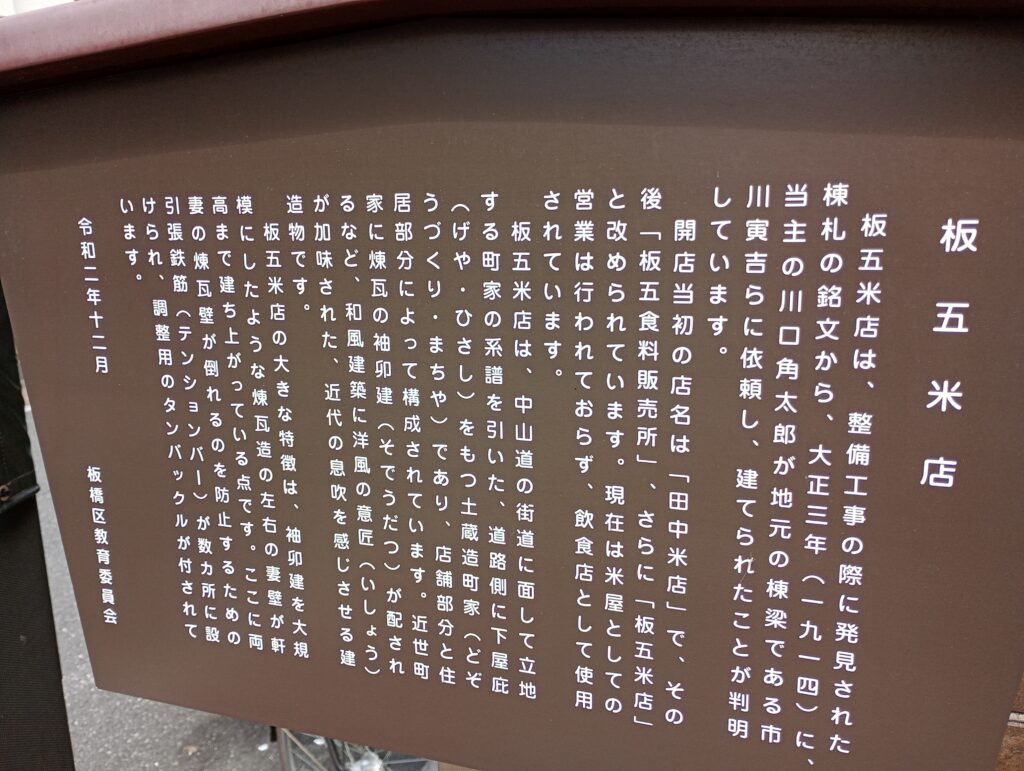 板五米店さんは、都営三田線「板橋区役所前駅」A1口から徒歩約2分の場所にあります。旧中山道仲宿商店街の板橋区役所側の入り口に位置し、築100年以上の米屋を再生した歴史ある店舗ですので、すぐに見つかると思います。