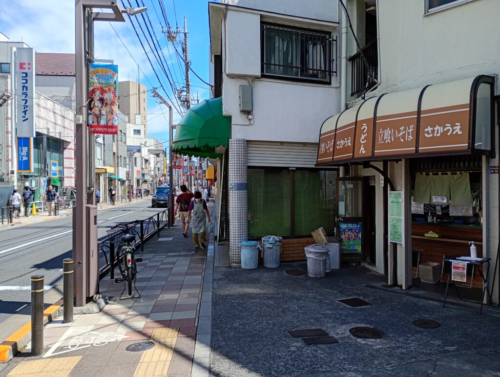 「立ち食いそば さかうえ」さんは都営三田線志村三丁目駅からサンバ祭りで有名な志村銀座商店街を2,3分歩いた場所にあります。昭和レトロな商店がとして人気なトンネルマーケットの入り口に位置しています。