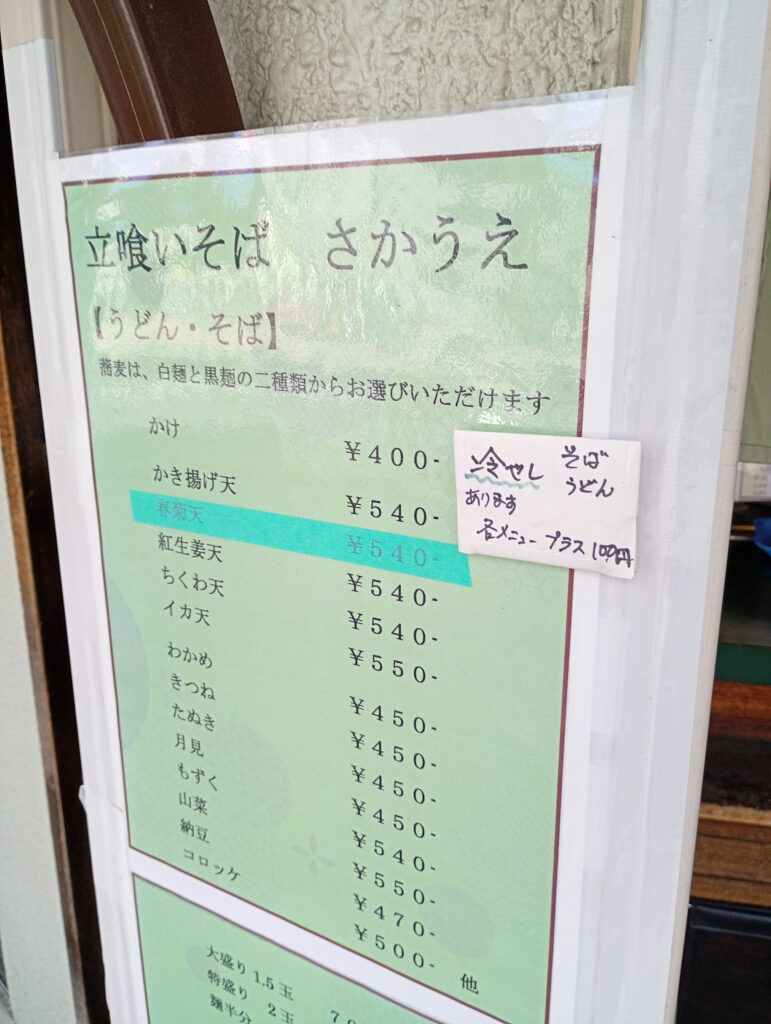 | 店名 | 立ち食いそば さかうえ (たちぐいそば さかうえ) |