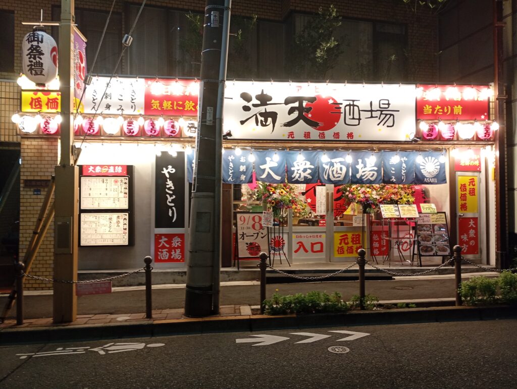 もともとこの場所には、同じく株式会社大庄が運営する「やる気ホルモン」がありましたが、本蓮沼駅前のビル建て壊しに伴い、「満天酒場 本蓮沼店」がときわ台へ移転する形で業態変更となりました。