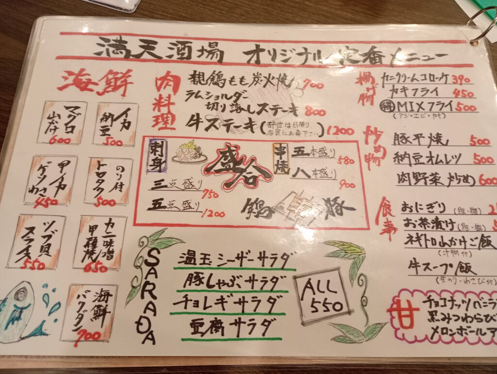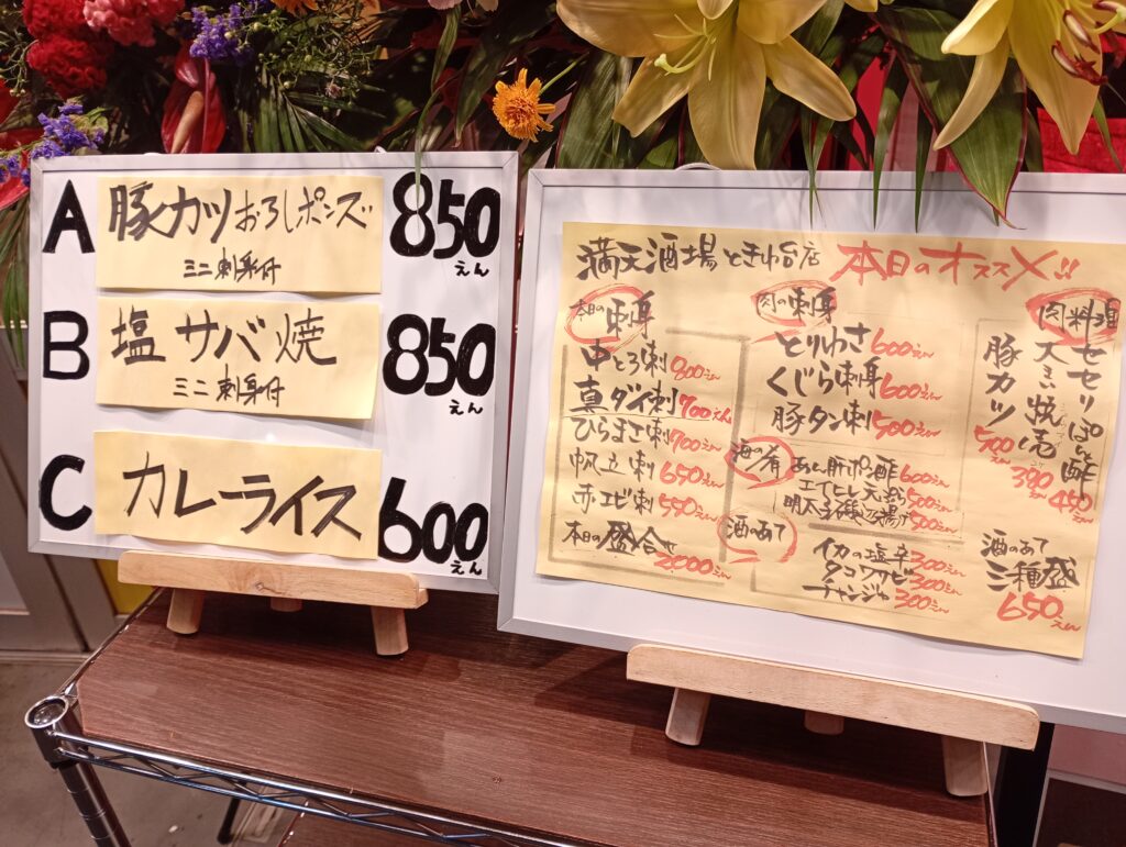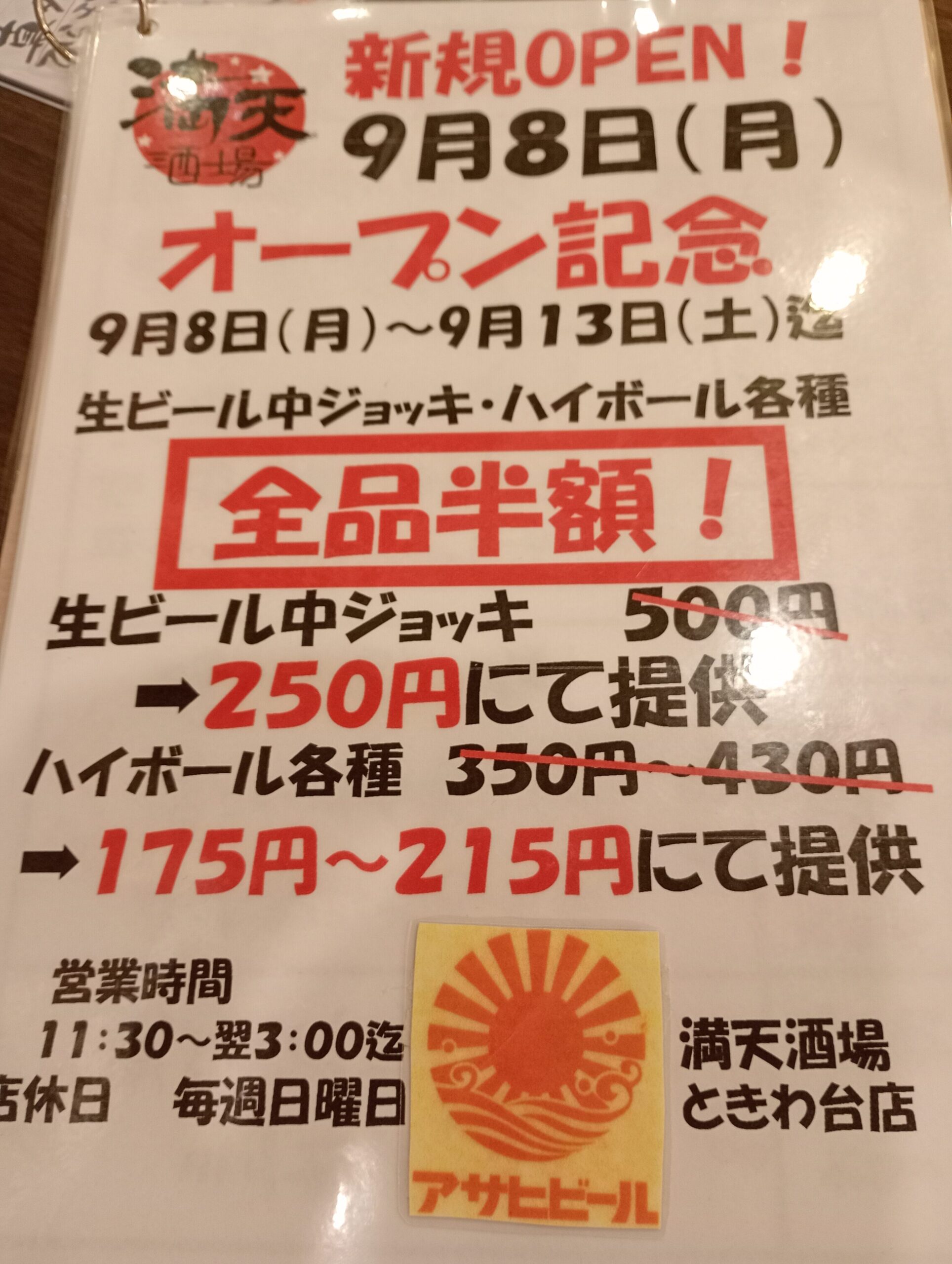 以前は「やる気ホルモン」だった場所ですが、本蓮沼の建物の取り壊しに伴い「満点酒場本蓮沼店」がときわ台に移転し、リニューアルオープンとなりました。平日にもかかわらず、オープン初日から多くの人で賑わっていました。