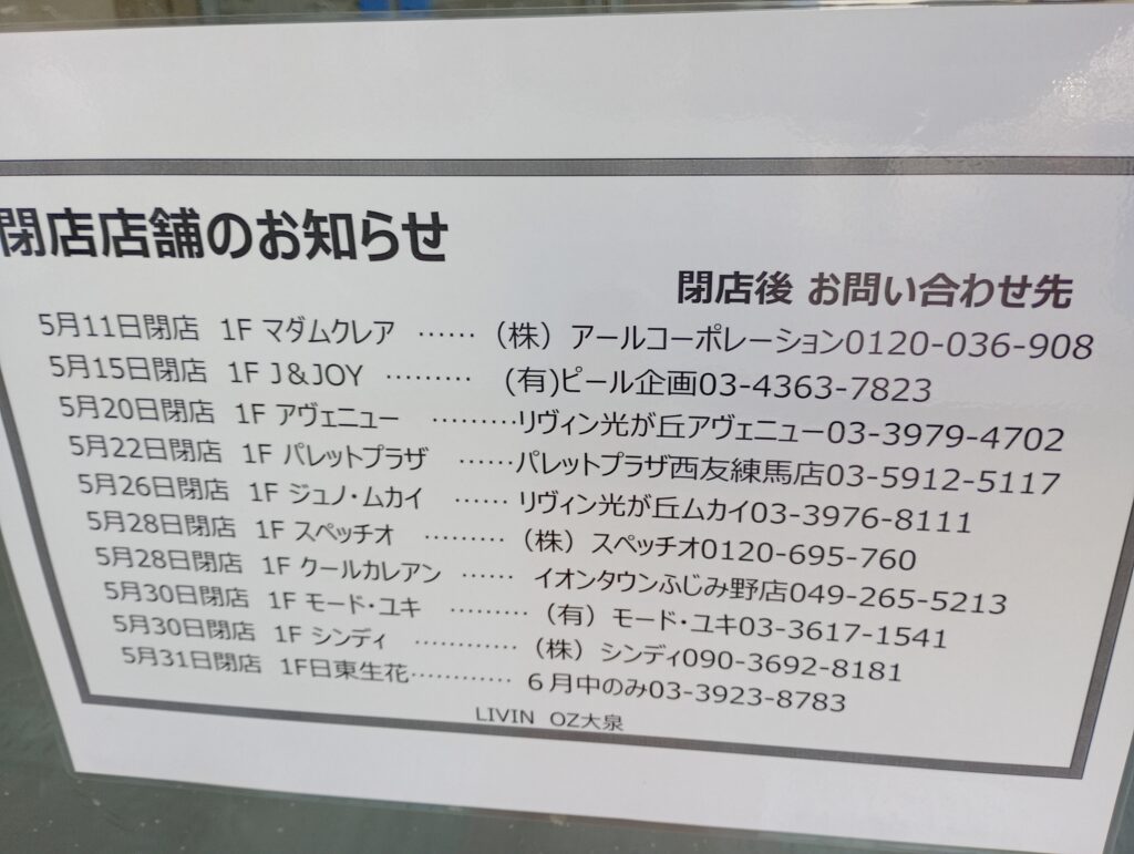 リヴィン オズ大泉店では、2025年秋のリニューアルオープンに向けて、改装工事が進められています。すでに一部の新しいテナントの情報が明らかになっています。