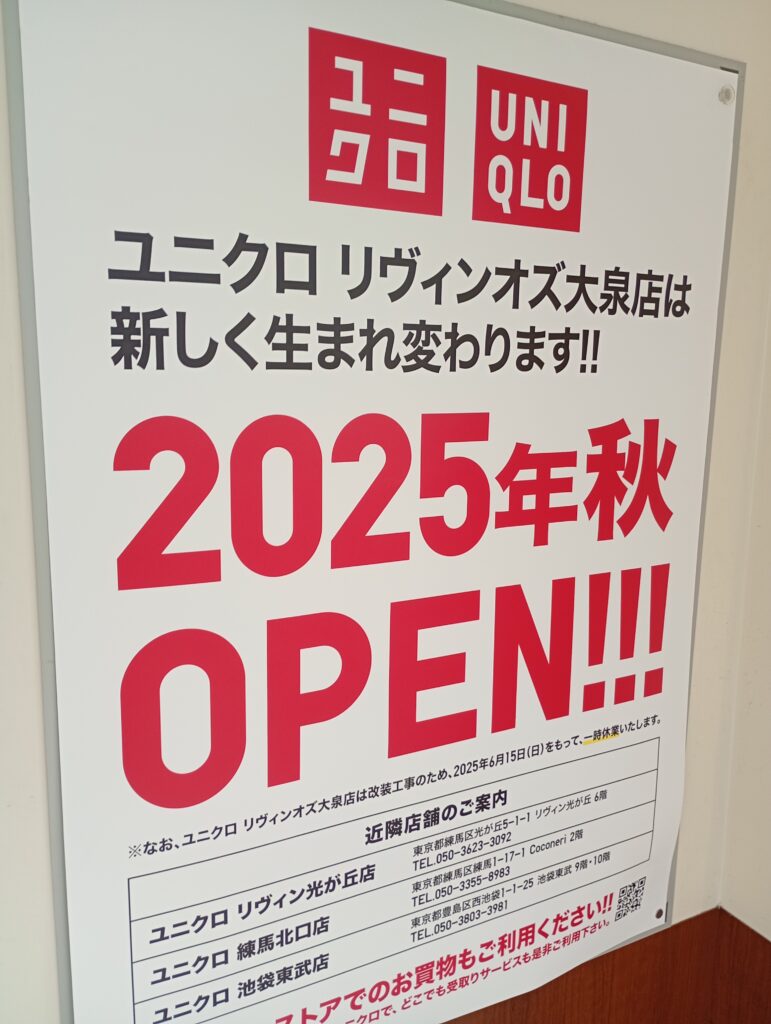 現在改装中の「リヴィン オズ大泉店」ですが、次々に大型のテナントのオープンが発表されています。UNIQLO、GU、ノジマ、無印、そして、ドン・キホーテがオープン予定となります。
