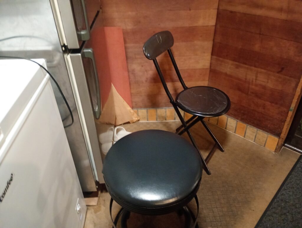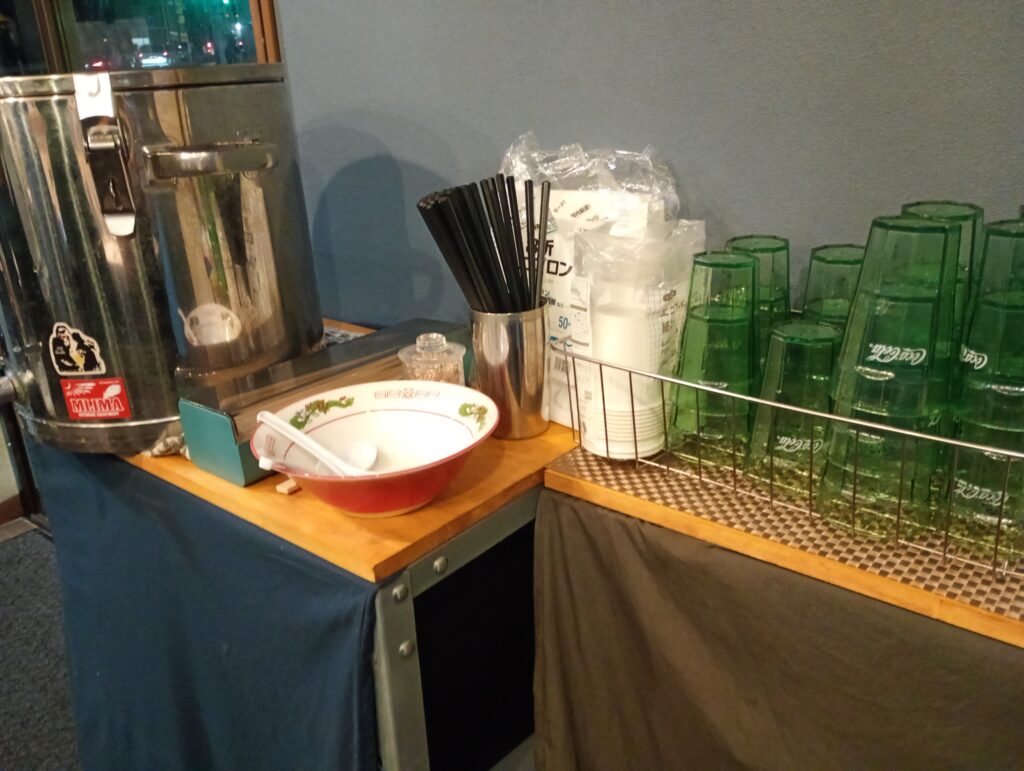 以前はお店の外に列ができていたのですが、車通りも多い場所ですし、何より暑さや悪天の中で外で待つのは大変ですので、最近は店内で待てるように席が設けられています(3人座れます)。お水もありますので、席で待っている間にお水を飲めたりもします。二郎系、特に二郎の看板を出しているお店は独特の緊張感がありますが、4号の店長は優しい方です。
