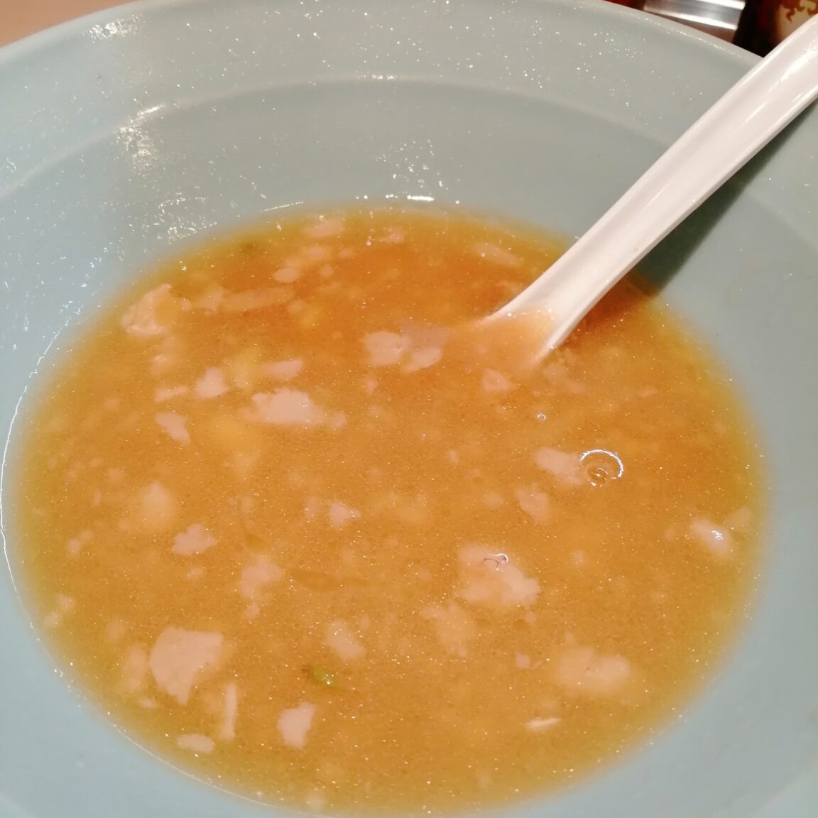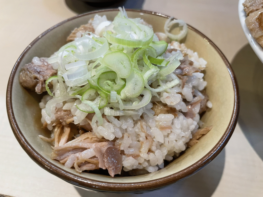 濃厚な豚骨ベースに、パンチのあるスープが特徴です。キリッとしたカエシのエッジが効いていながらも、しっかりと乳化してマイルドに仕上がっています。ゴロゴロとした大きめの脂が入っており、飲み干せるくらいおいしいです。