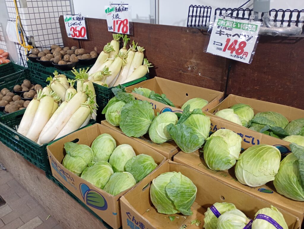 店頭には野菜が並んでいますが、いずれも安いですし、回転も早いので市場から届いた比較的新鮮なものが販売されている印象です。