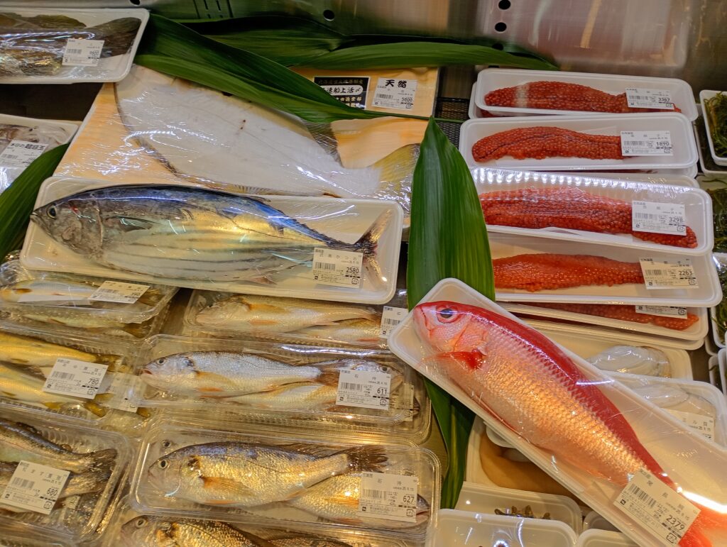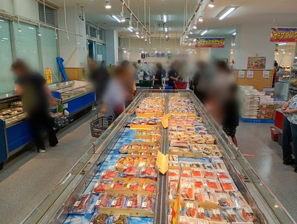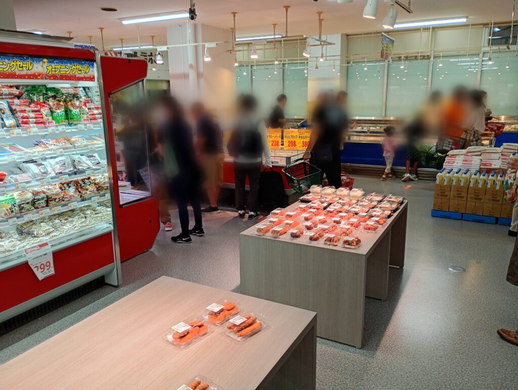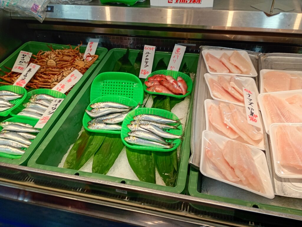 魚もオープン日ということも色とりどりの高級魚から鮮度の良さそうなイワシまで揃っていました。もちろん、刺し身や切り身、お寿司などもありました。