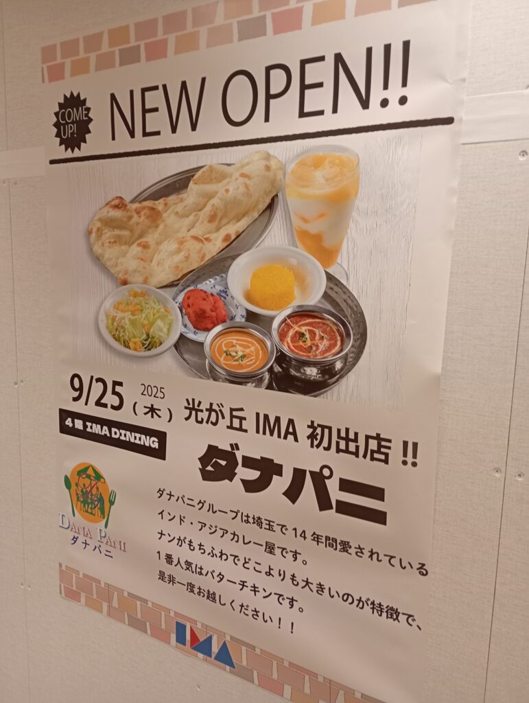 光が丘IMAの中央館4階にある「IMA DINING」に、インドカレー店「ダナパニ」がオープンする予定です。オープン日は2025年9月25日(木)です。