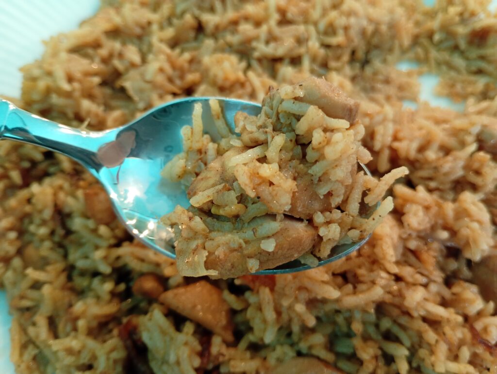 一口食べると、まずガラムマサラを始めとする数種類のスパイスのパンチが効いた風味が口いっぱいに広がります。辛さは控えめで、スパイスの芳醇な香りと旨みが前面に出ており、辛いものが苦手な人でも楽しめます。チキンはスパイスがしっかりと染み込んでおり、噛むごとに旨みが溢れ出てきます。全体的にバランスが取れており、最後まで飽きることなく楽しめる一品です。
