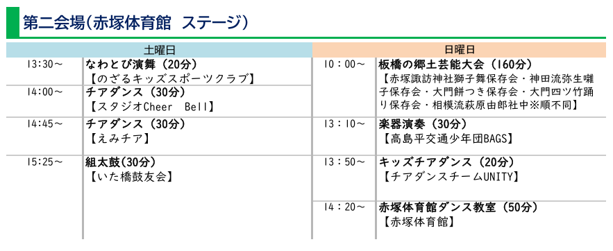 ※今年は赤塚小学校が長寿命化工事により使用できないため、赤塚小学校で実施していた催し物は、下赤塚小学校・赤塚庁舎で実施します。