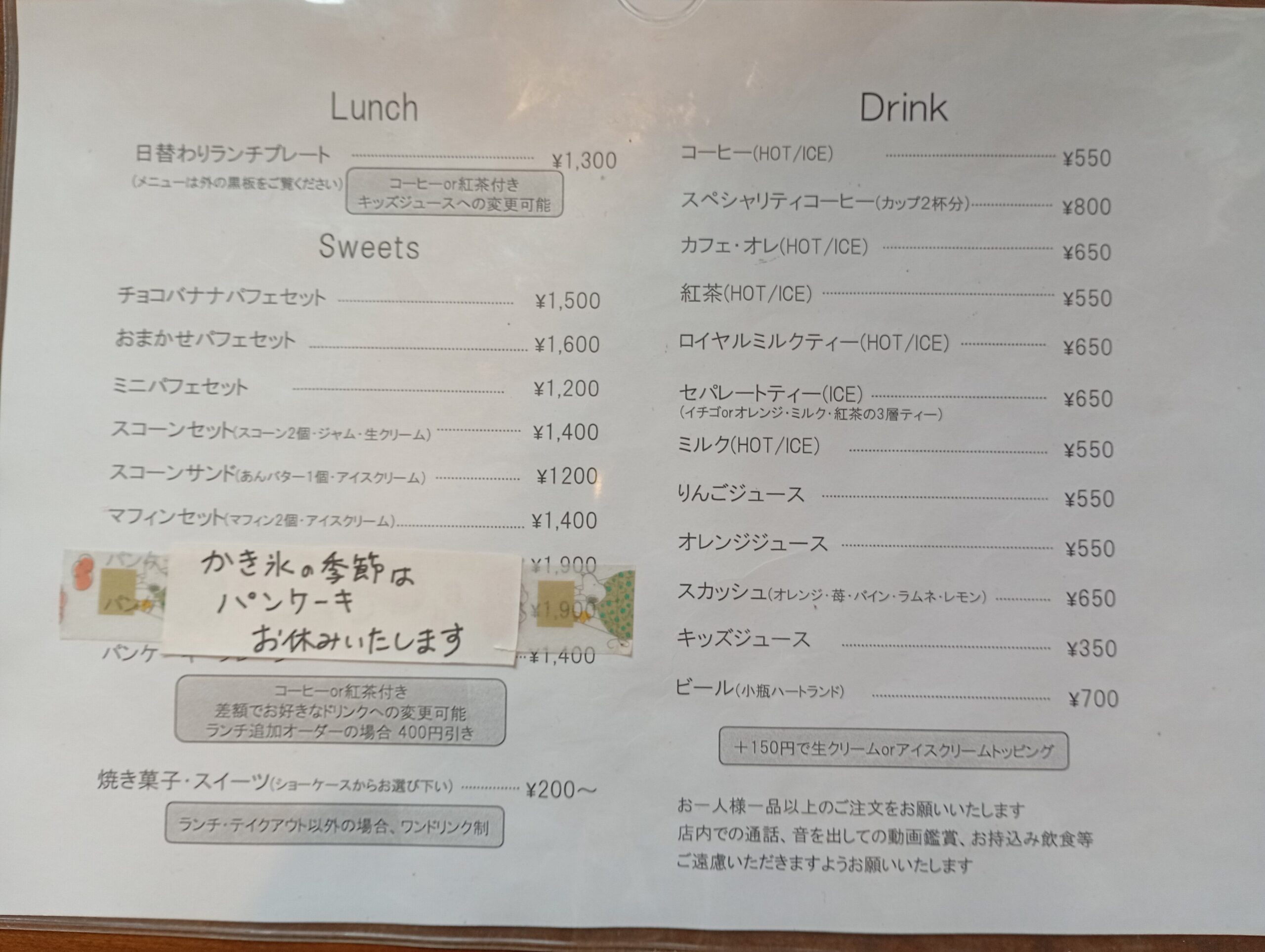 季節のパフェやかき氷、ランチ、パンケーキなどが楽しめます。 ランチプレートも人気みたいです。