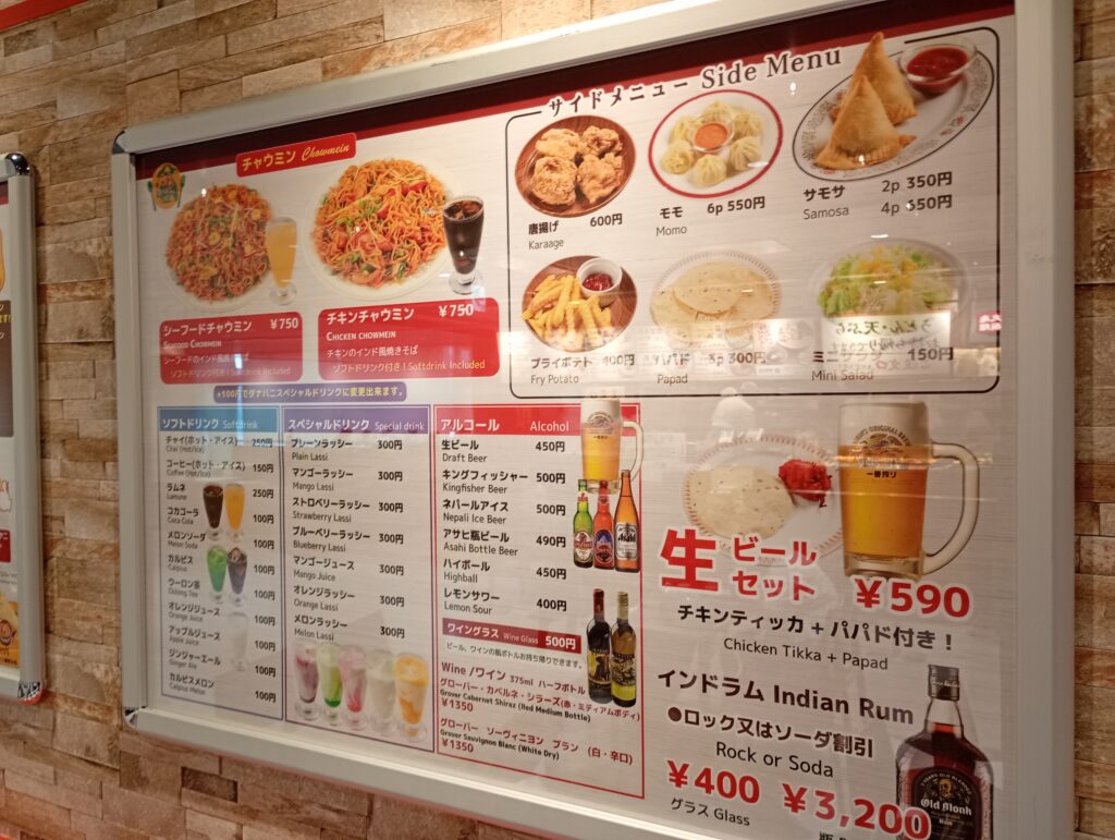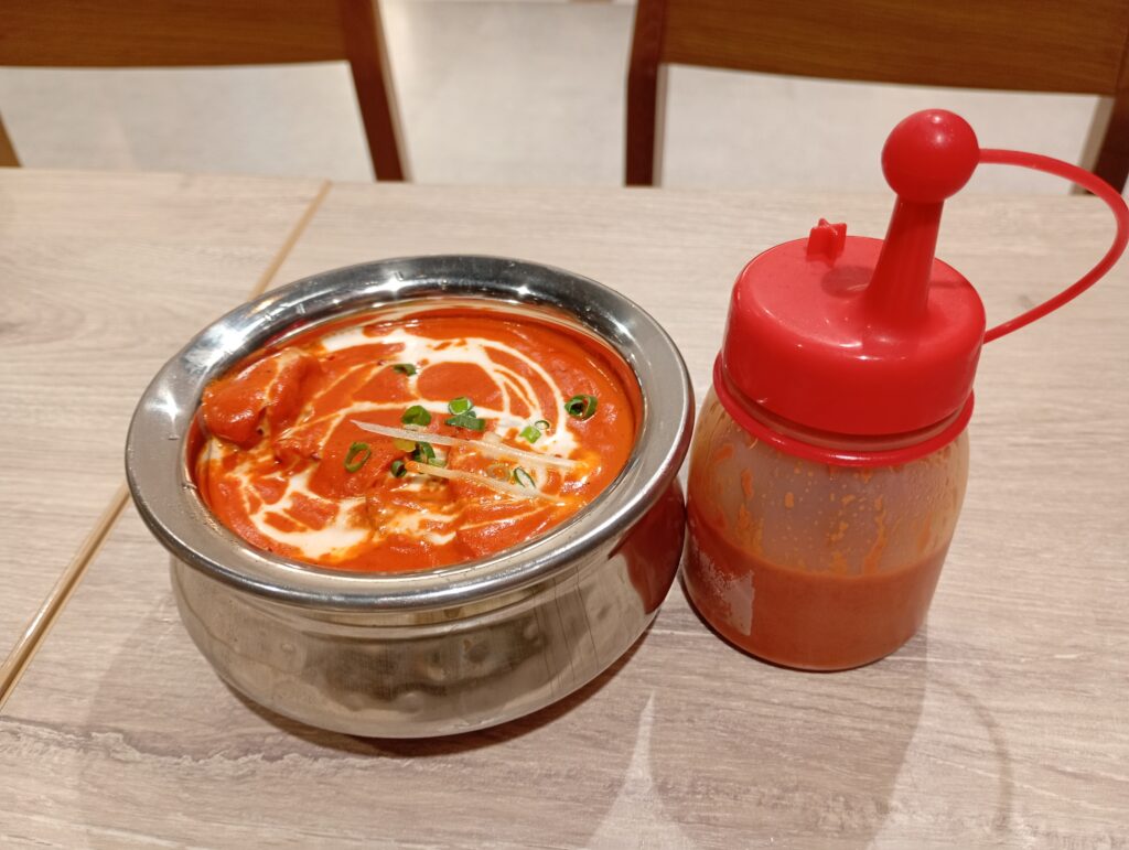店員さんにおすすめされたバターチキンセット880円を注文してみました。ほかにもトマトチキンやエビカレーなどが人気みたいです。