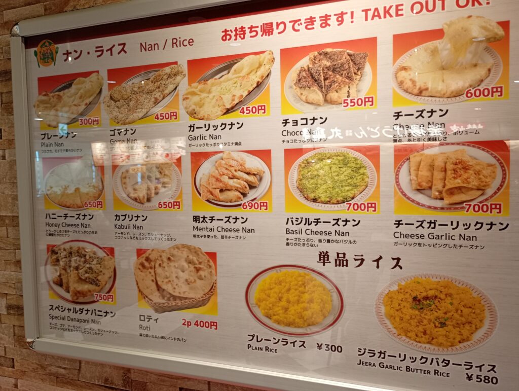 メニューはカレーとナンのセットが850円です。ナンは300円でチーズナンなどに変えることができるそうです。