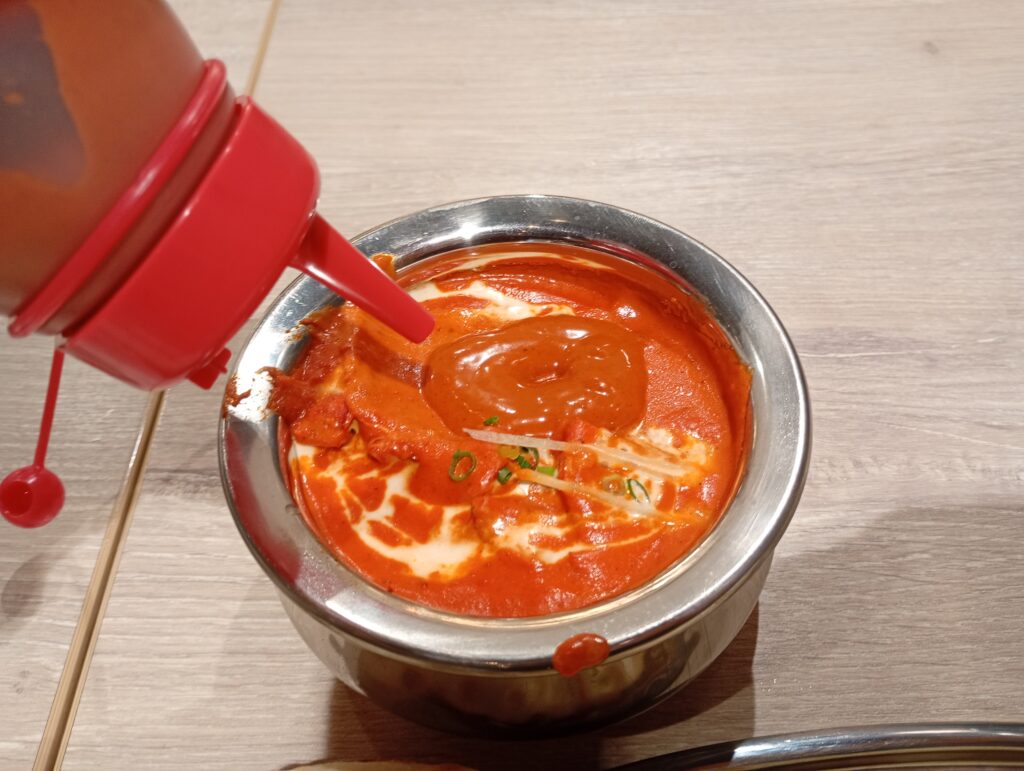 もともとのルーは甘みが強めなので、辛いソースで辛さを調整しながらルーの味を自分好みに変えられます。