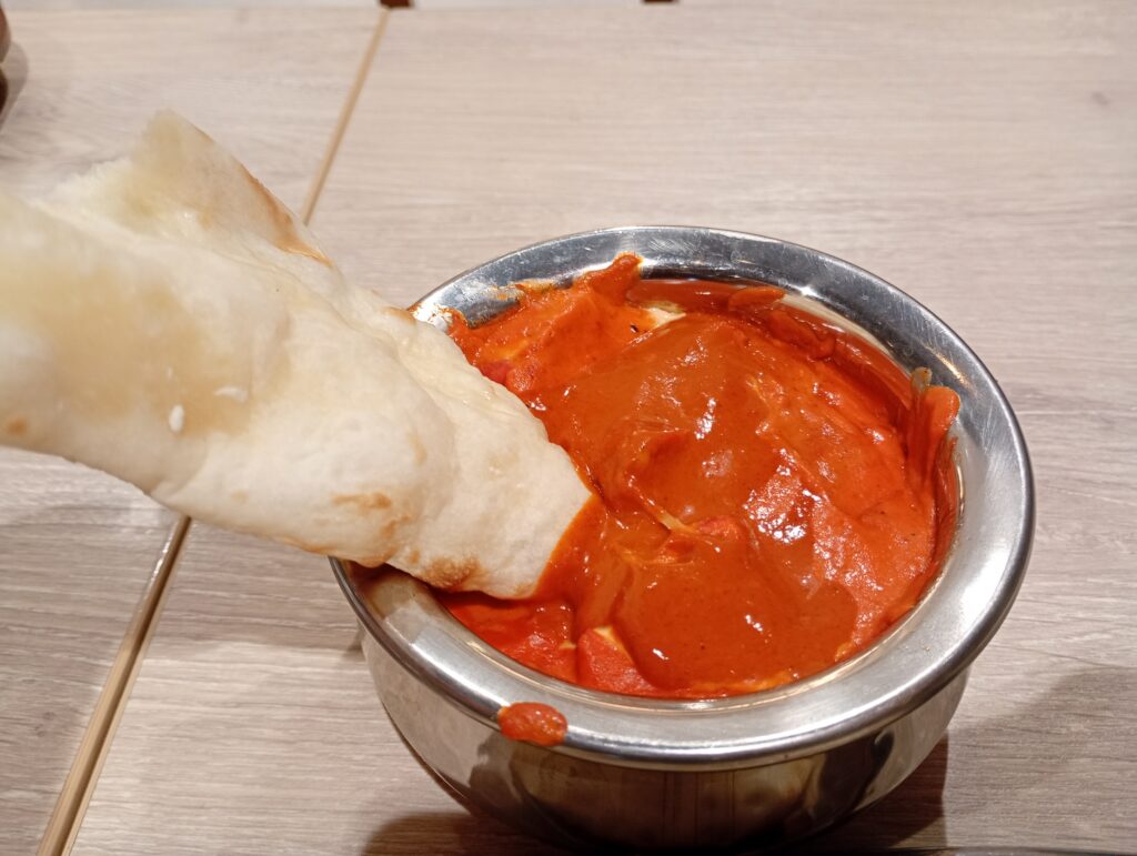 ナンをちぎりながらカレーにつけて食べていきます。ルーの下の方にはチキンがたくさん入っており、タンドリーチキンみたいな味わいで美味しかったです。