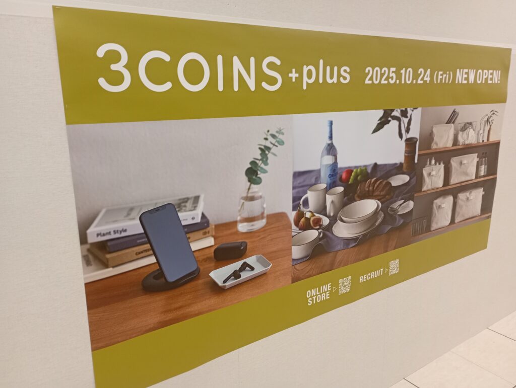 もちろん、3COINS+もオープンとなり、100円、300円均一の魅力的な商品が並びます。