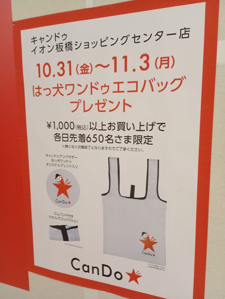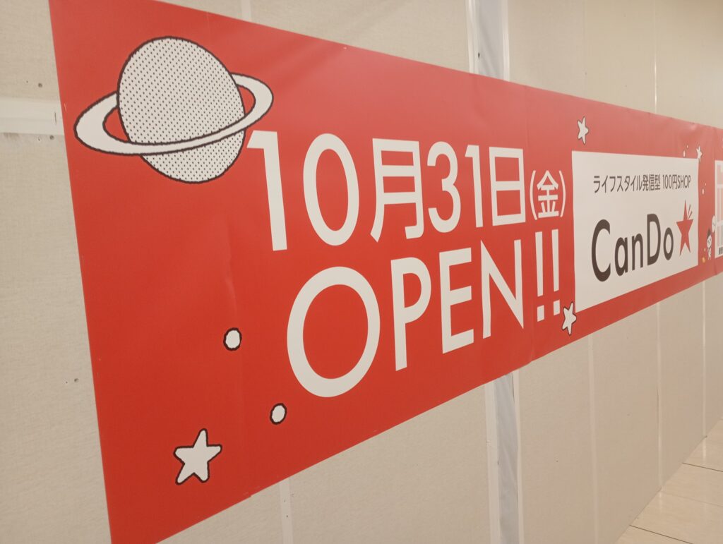 まずはセリアが閉店し、CanDoが2025年10月31日にオープンとなります。オープニングではエコバッグのプレゼントがあるそうです。