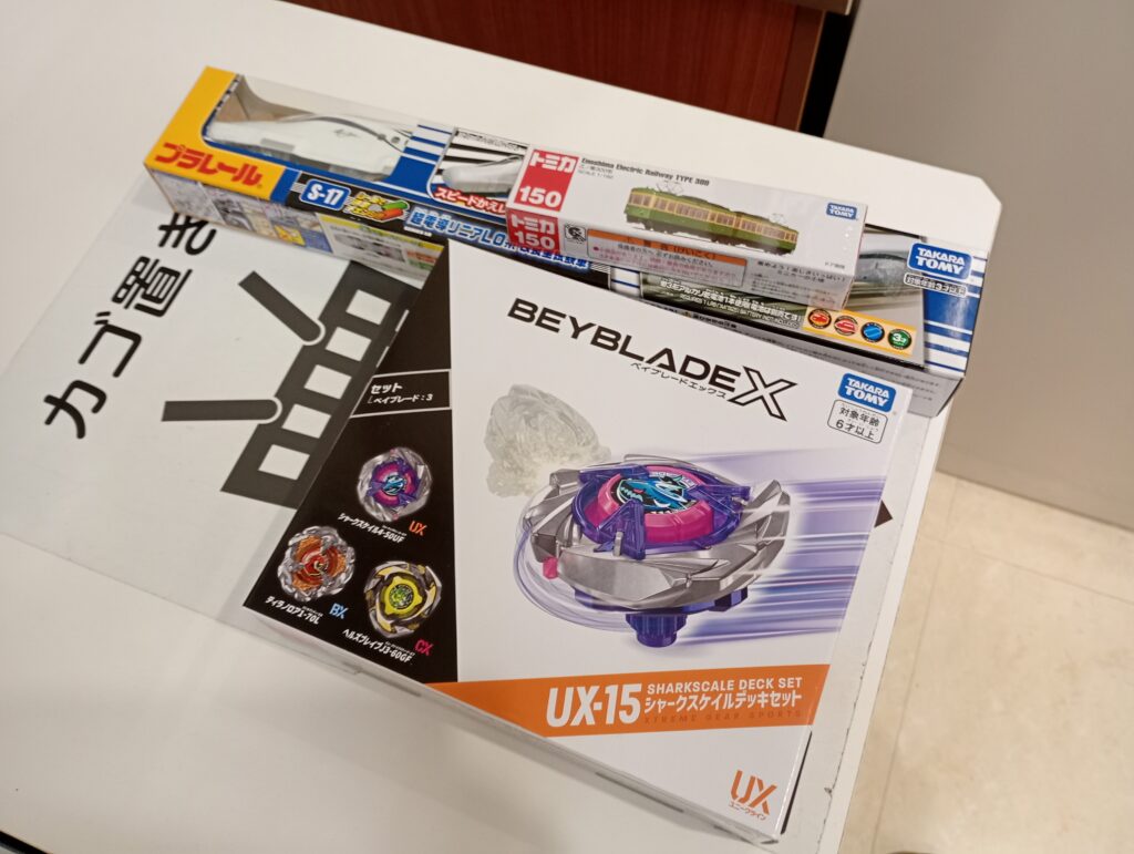 トミカやベイブレード等を買ってみました。ちょうどいたPayで10%還元のタイミングでしたのでラッキーでした。
