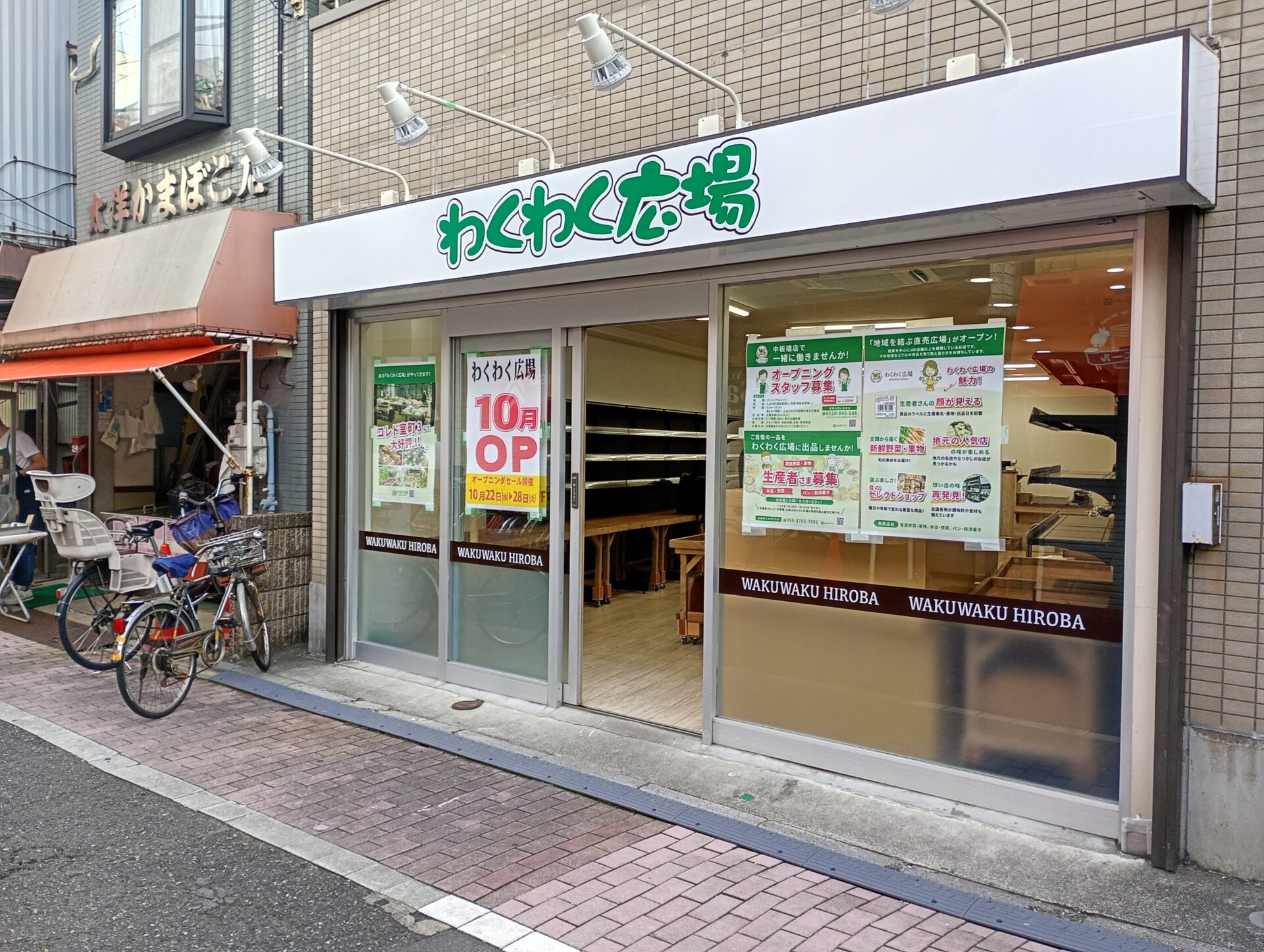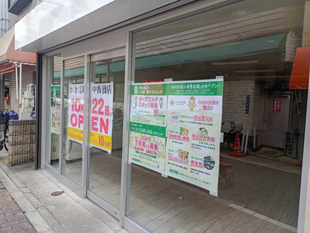 2025年10月22日中板橋北口方面のスーパーサンエー前に「わくわく広場中板橋店」がオープン。「地域を結ぶ直売広場」をコンセプトに、新鮮な野菜や地元の生産者による手作りのお弁当、パン、総菜などを取り揃えるお店だそうです。