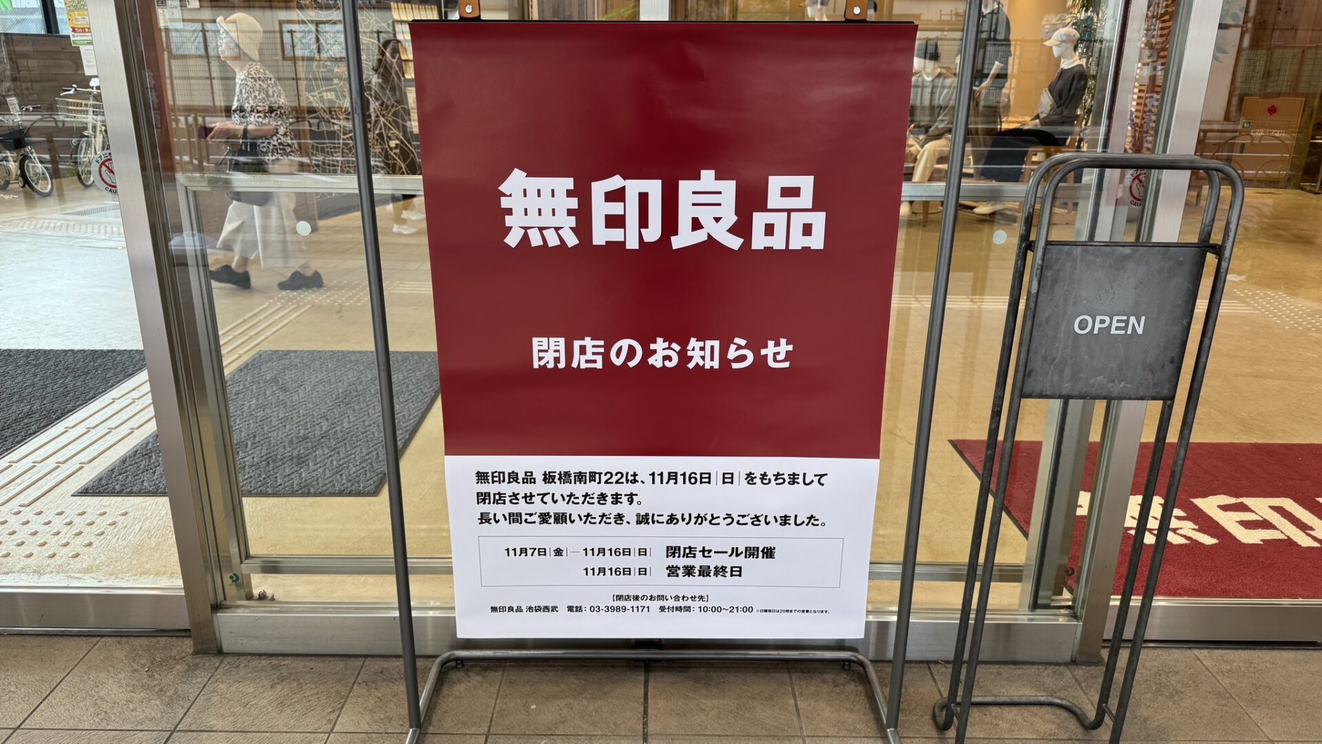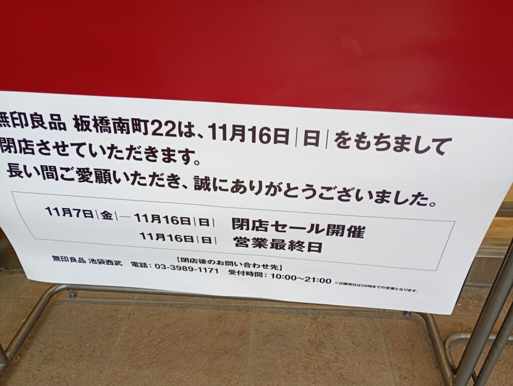 日頃より無印良品 板橋南町22をご愛顧いただき誠にありがとうございます。当店は2025年11月16日(日)を最終営業日として、閉店いたします。