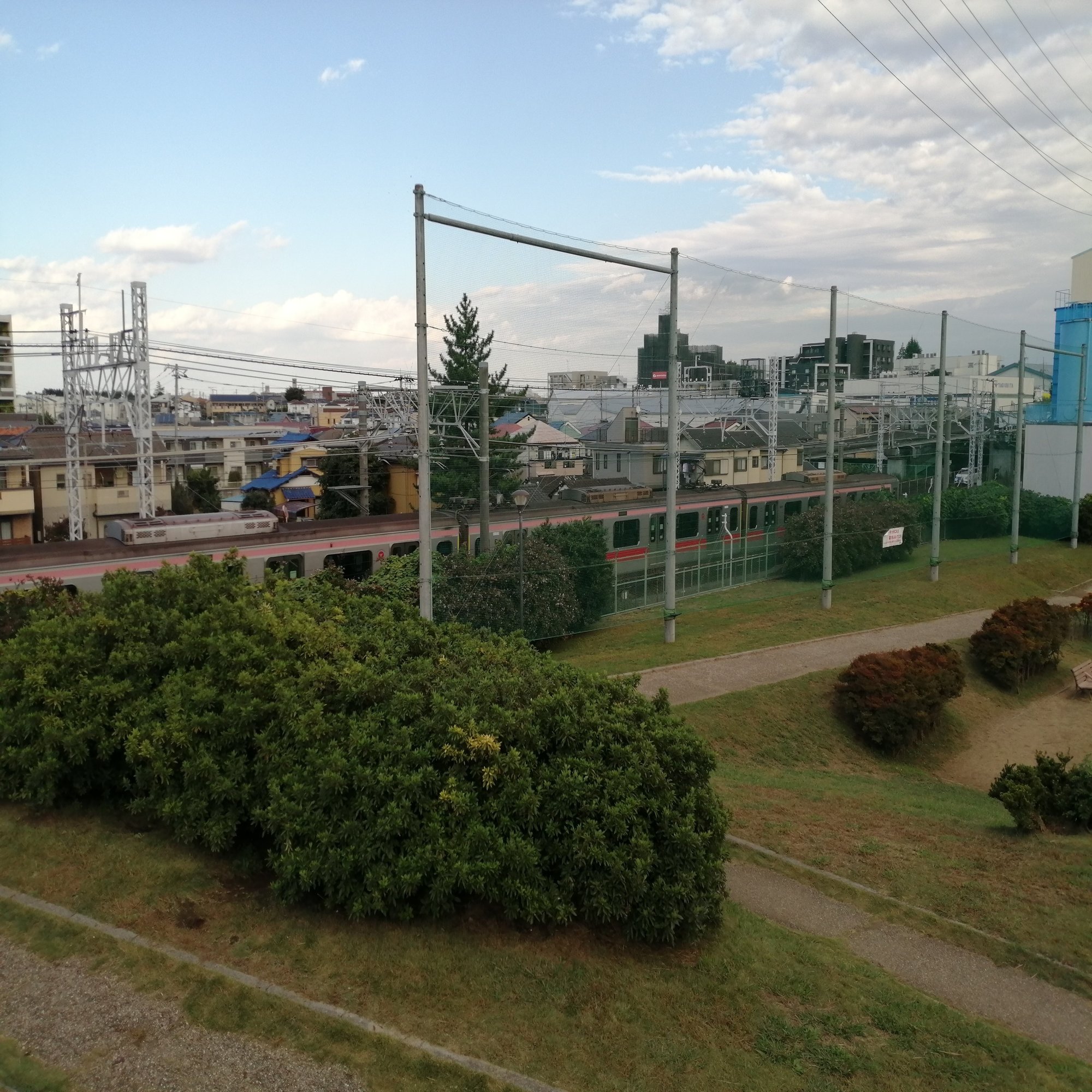 この公園は東武東上線の線路沿いにあるため真横を電車が猛スピードで通過します。