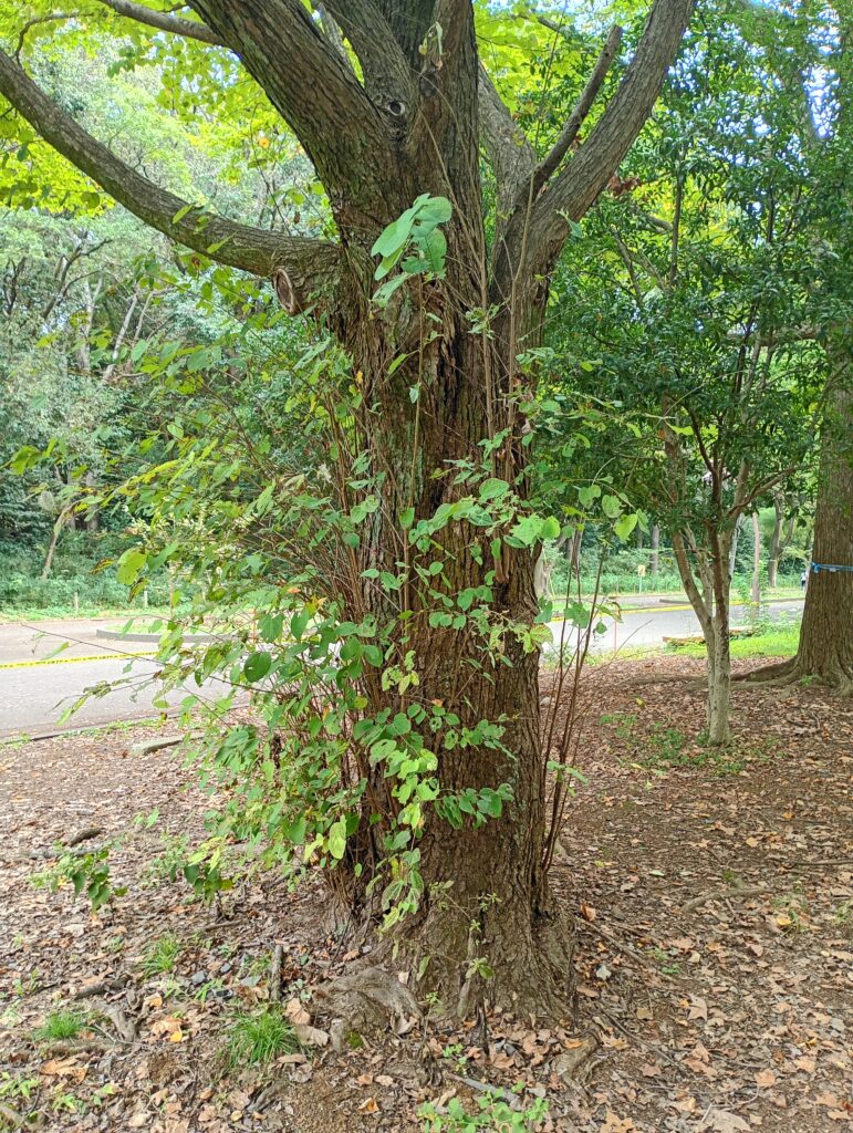 特にカツラの木に発生しているそうで、アスレチック広場周辺のカツラの木の周りにはテープが貼ってありました。