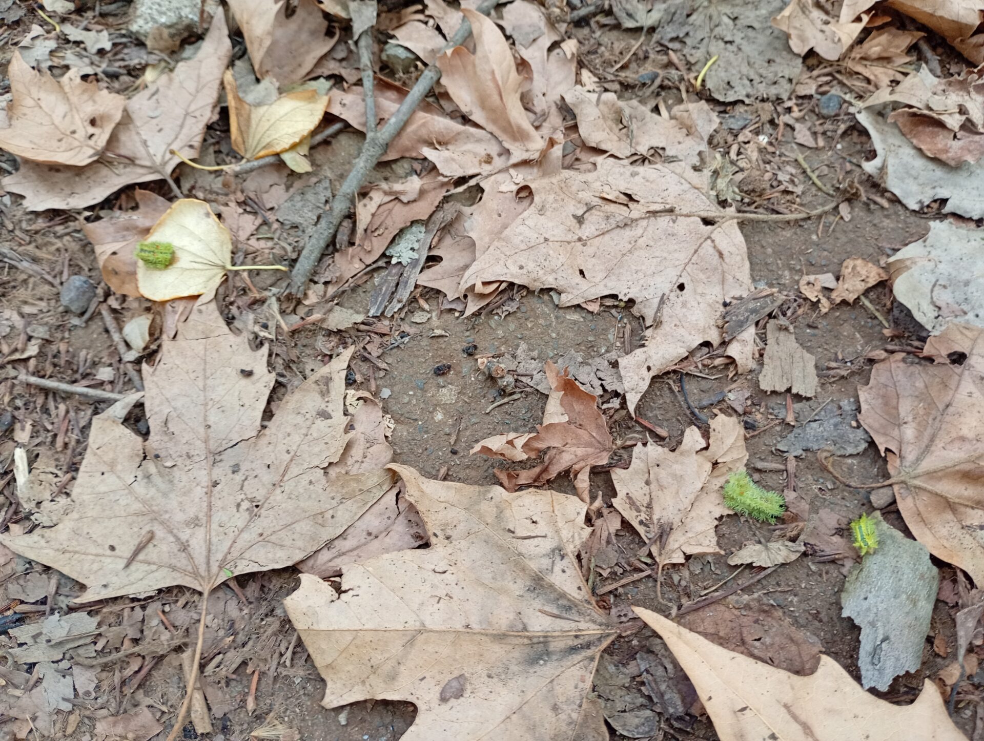 足元には大量のイラガの幼虫が!?今年は9月に入っても暖かかったため、孵化の時期が10月初旬あたりに一気に固まったことも大量発生の一因のようです。