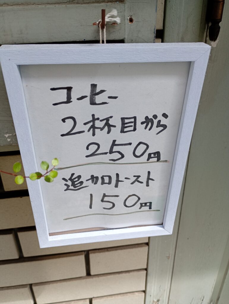 コーヒーのお代わりやケーキセットもあります。お店に来られる方は8割が常連さんで、みなさんのんびりとタバコをくゆらせながら雑誌を読んだりされているそうです。