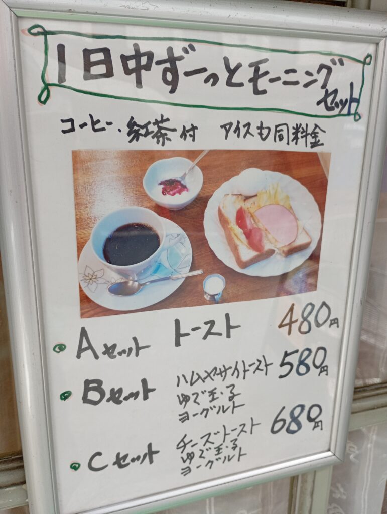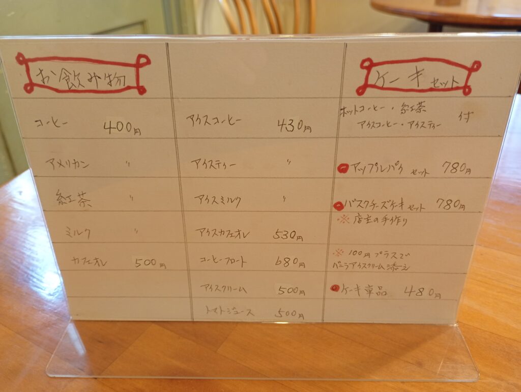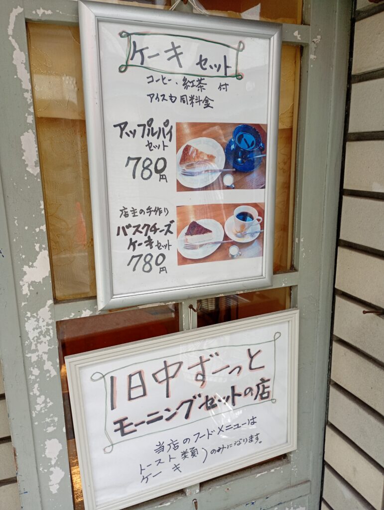 以前はマスターと御夫婦で営業されていたそうです。マスターがキッチンで、奥様がホールを仕切っていたそうですが、マスターが3年前に亡くなられたため、今はお母さんが一人でも提供できるモーニングやケーキを提供しているとのことです。そのため、1日中モーニングなのですね。