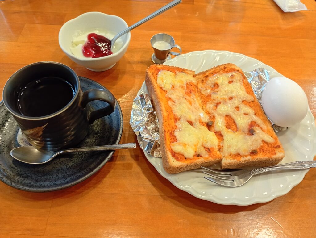 Cセット(チーズトースト、ゆで卵、ヨーグルト)680円