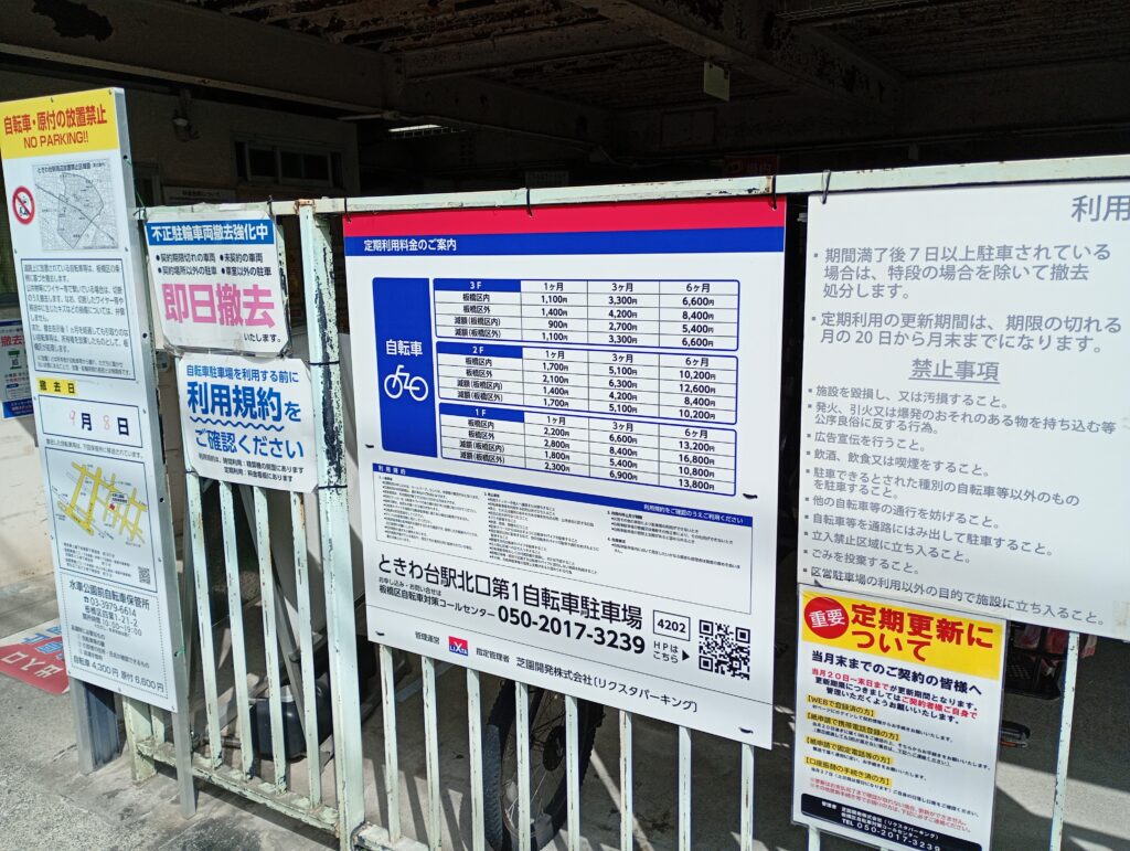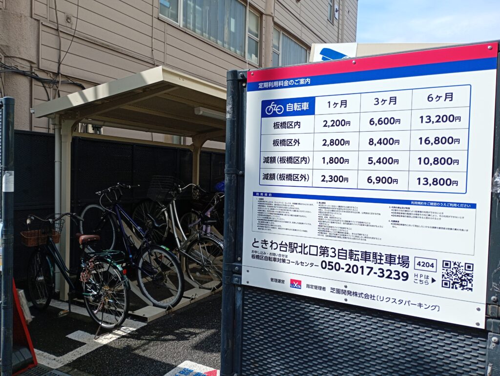 ときわ台北口第1自転車駐車場は線路沿いの上板橋側にあります。3階建ての立体駐輪場になっており、キャパシティも大きいです。