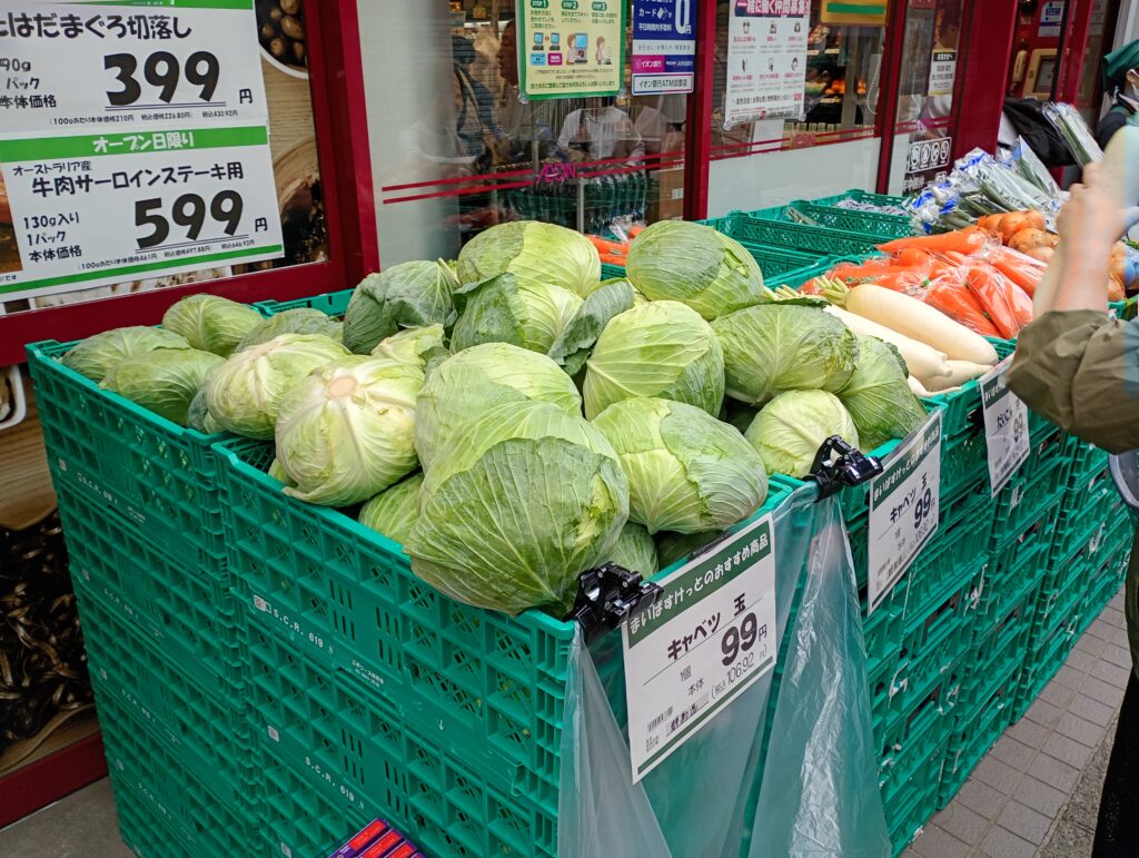 セール内容はチラシのとおりですが、各種野菜が99円、たまご一パック179円は皆さん手に取られていました。
