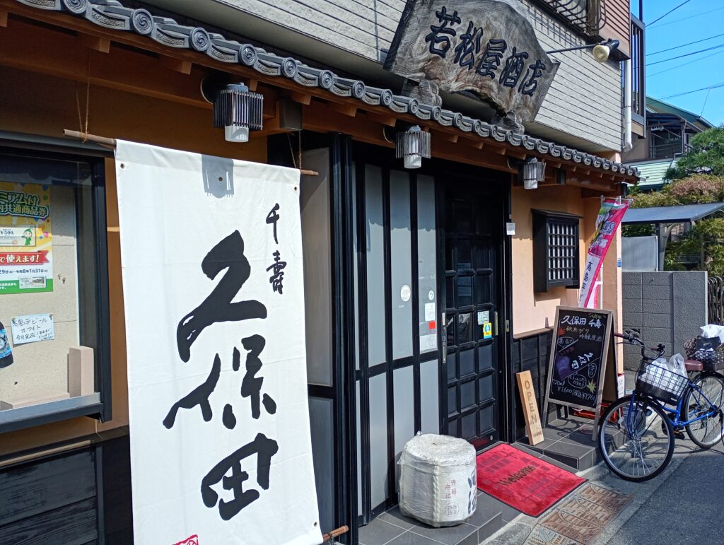 外観は歴史とこだわりを感じさせる、落ち着いた和の雰囲気があります。大きく「久保田」の文字が出ています。また、「高島平ビール」ののぼりも出ていますね。