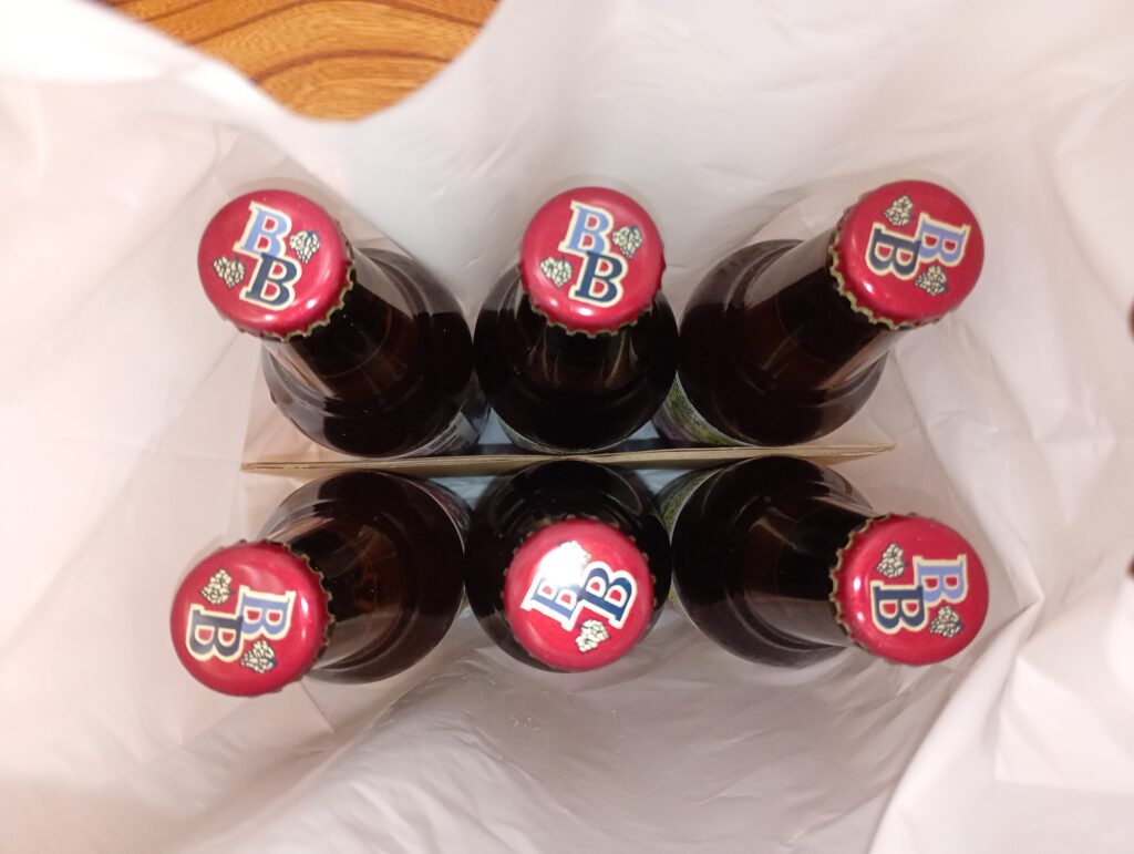 レジの近くには、話題の「高島平ビール」がありました!若松屋酒店さんが中心となり、地元を盛り上げようと企画したクラフトビールです。ラベルには高島平団地など地元のモチーフが描かれています。