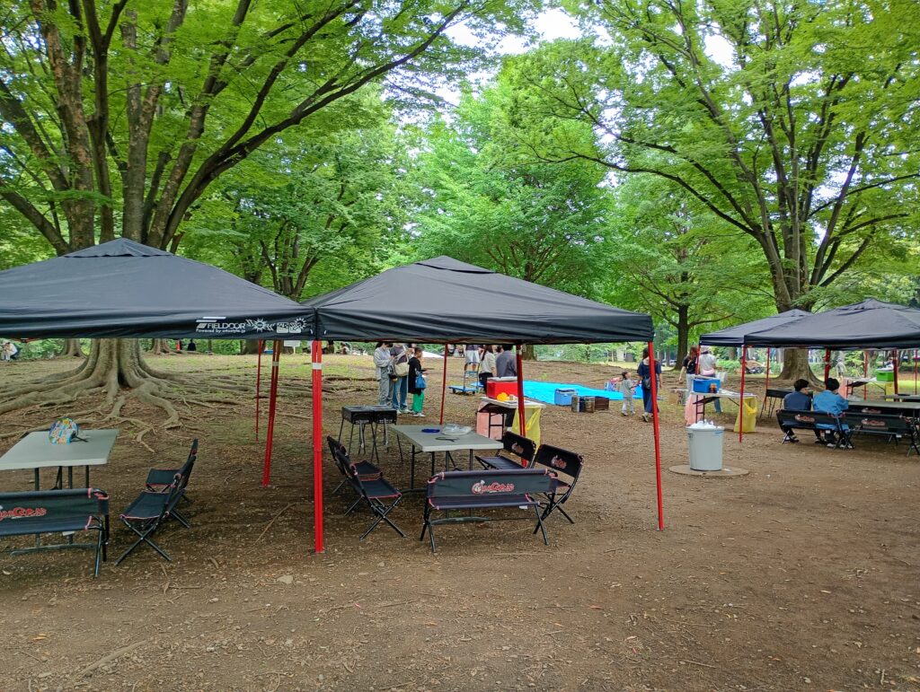 バーベキューも赤塚公園の人気のアクティビティの一つです。春や秋が人気のシーズンですが、木の日陰があるので夏場でも週末などはご覧の賑わいです。バーベキュー台があるわけではないので、自分で用意するか業者さんにお願いすることになりますが、その分多くの方が自由度高く利用できたりします。
