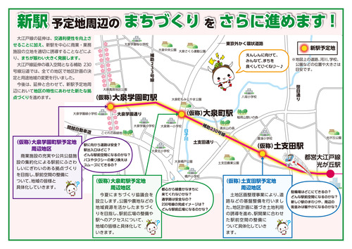 光が丘駅(練馬区)から北西へ約4キロメートルの延伸され、以下の3つの駅が新設される予定です(いずれも仮称)。
