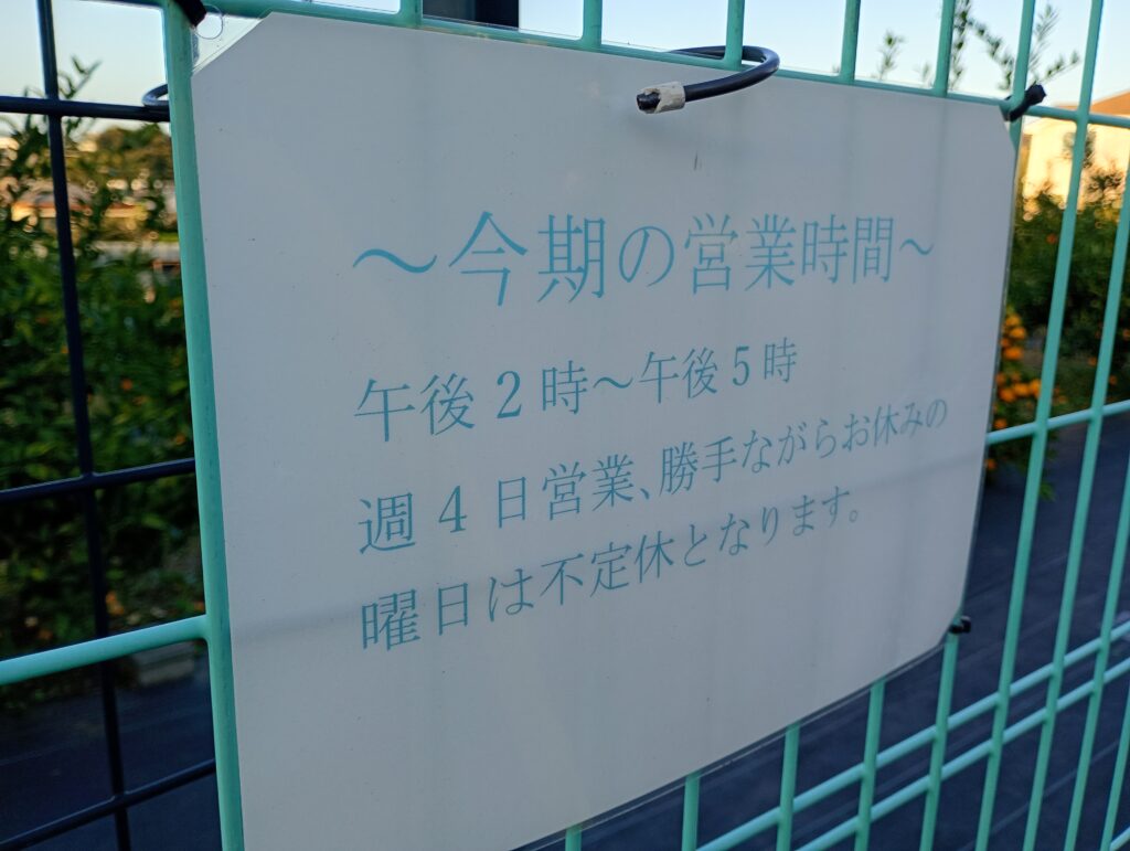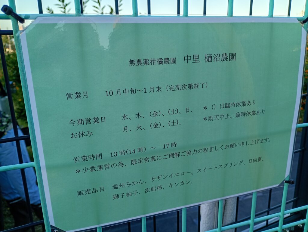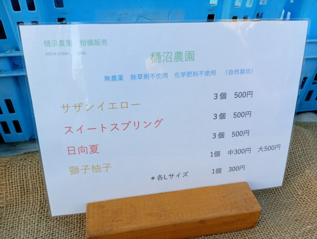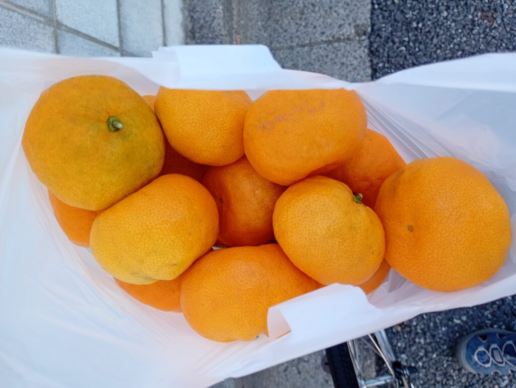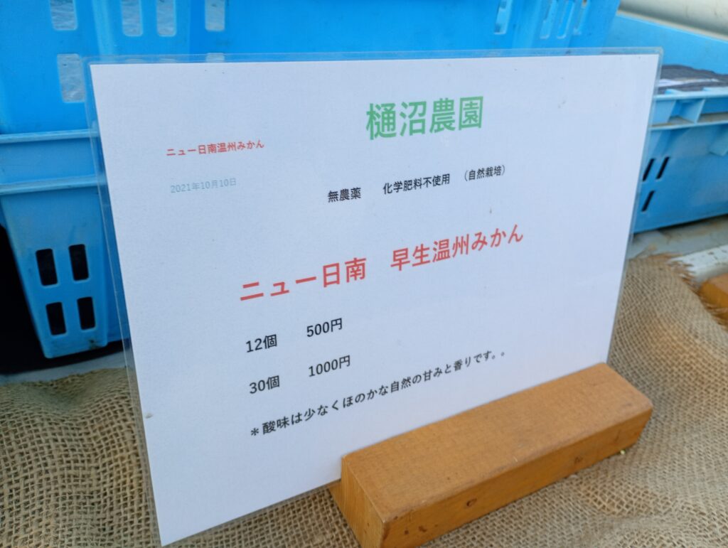 土支田駅から次の大泉町駅に向かう道中に樋沼農園さんがありました。今年はミカンが豊作だそうで、木にはびっしりとミカンが実り、枝が重そうに垂れ下がっています。無農薬にこだわり、甘みが強いのですが少し酸味の残るとってもおいしいミカンです。10月中旬は早生の恩州ミカンですが、これから11月から1月にかけて柿、「サザンイエロー」や「日向夏」などを販売されるそうです。養蜂も営まれており、なかなか購入できない熟成したはちみつの販売も予定しているとか。地域の方に愛されるミカン農園さんです。