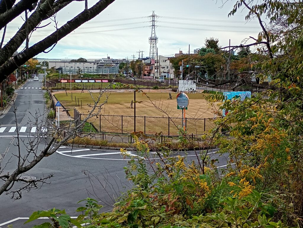 大江戸線が光が丘から延伸された場合の次の駅は「土支田駅」です。バス停の高松幼稚園西付近にある大きな広場が駅の予定地になっています。
