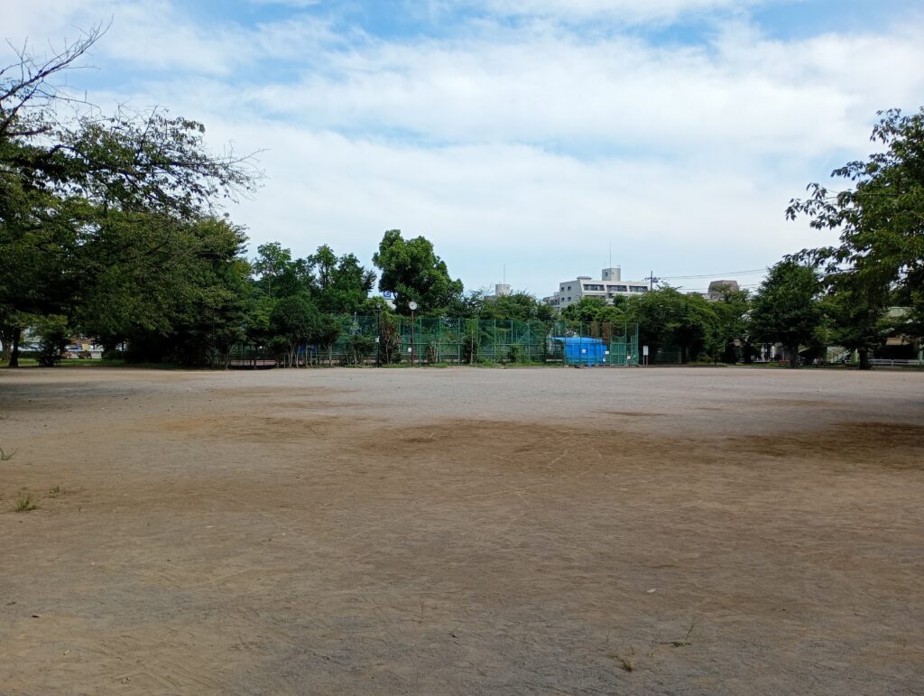 グラウンドもかなり広く、サッカーや野球をする方が多くおられます(区内の公園での球技は推奨されていないそうですが、こちらの公園は暗黙の了解で球技はやってもいいような雰囲気があります)。地域のサッカーチームが練習したり、野球チームが試合をしたりしています。