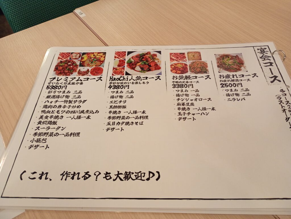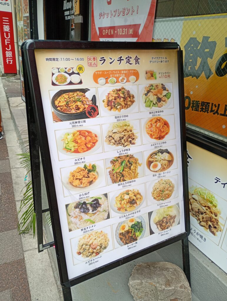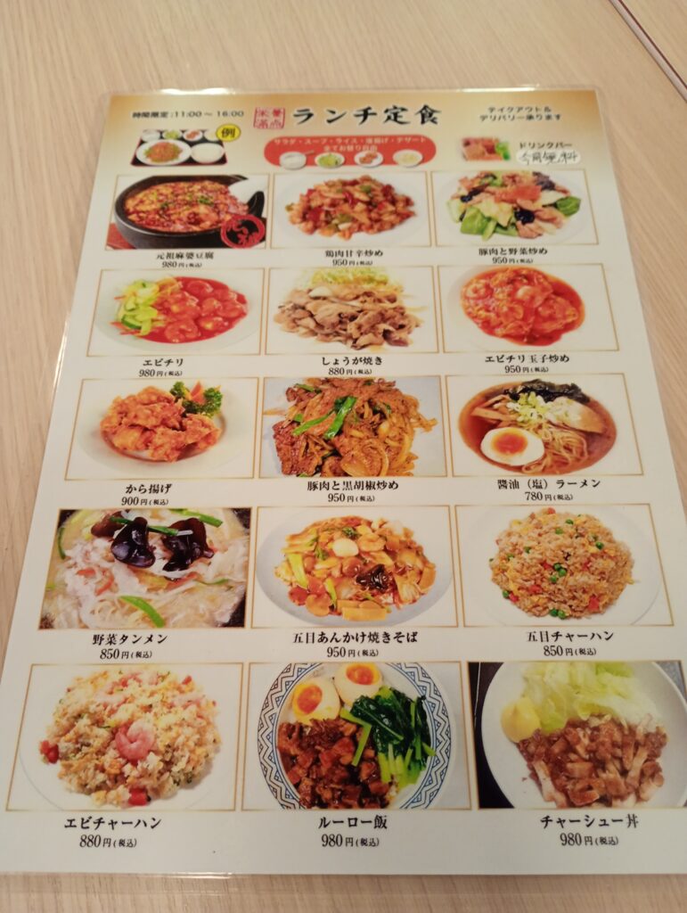 ランチはこんな感じのメニューでした。麻婆豆腐を中心に、中華料理が並んでいます。