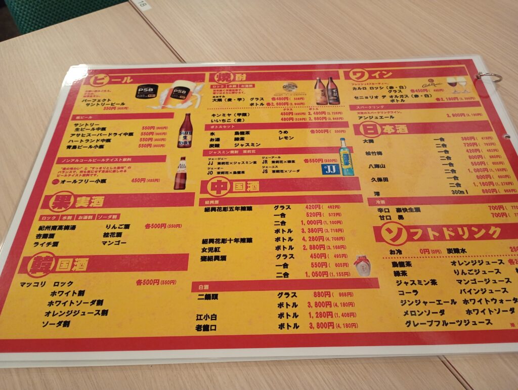 ドリンクメニューも載せておきます、昼からお酒が飲めます。
