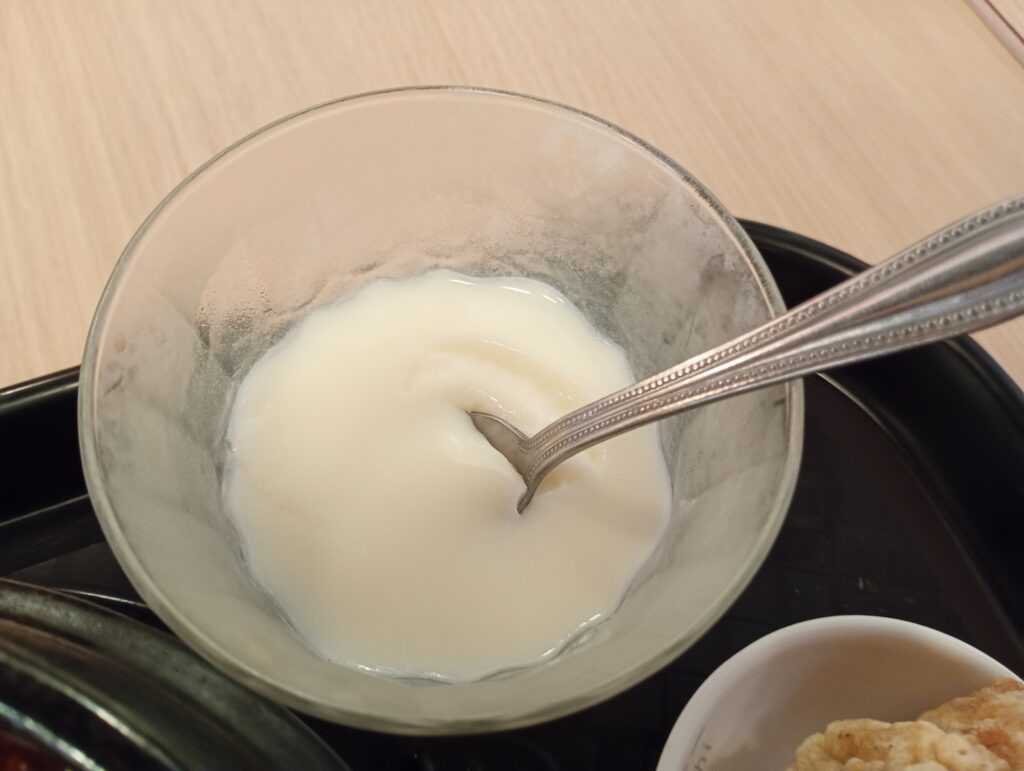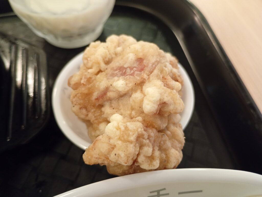 唐揚げやサラダ、杏仁豆腐などの付け合せがあり、なんと付け合せはお代わり自由です。
