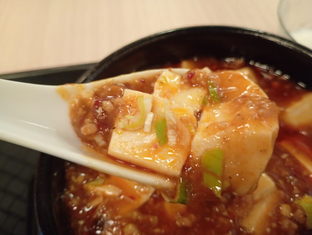 麻婆豆腐はとっても辛くてパンチがありました。唐辛子やホアジャンが効いていて、とっても美味しいです(ハオチーでした)。